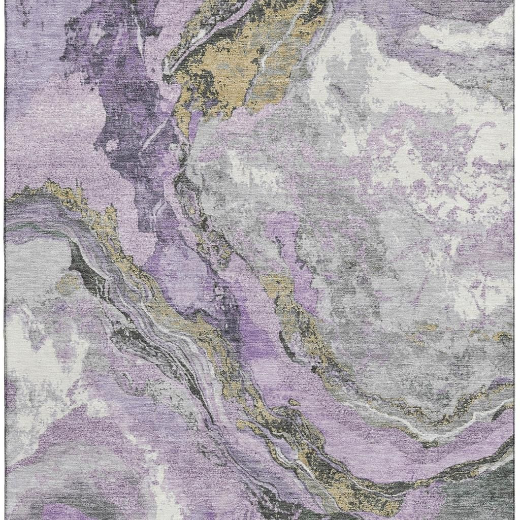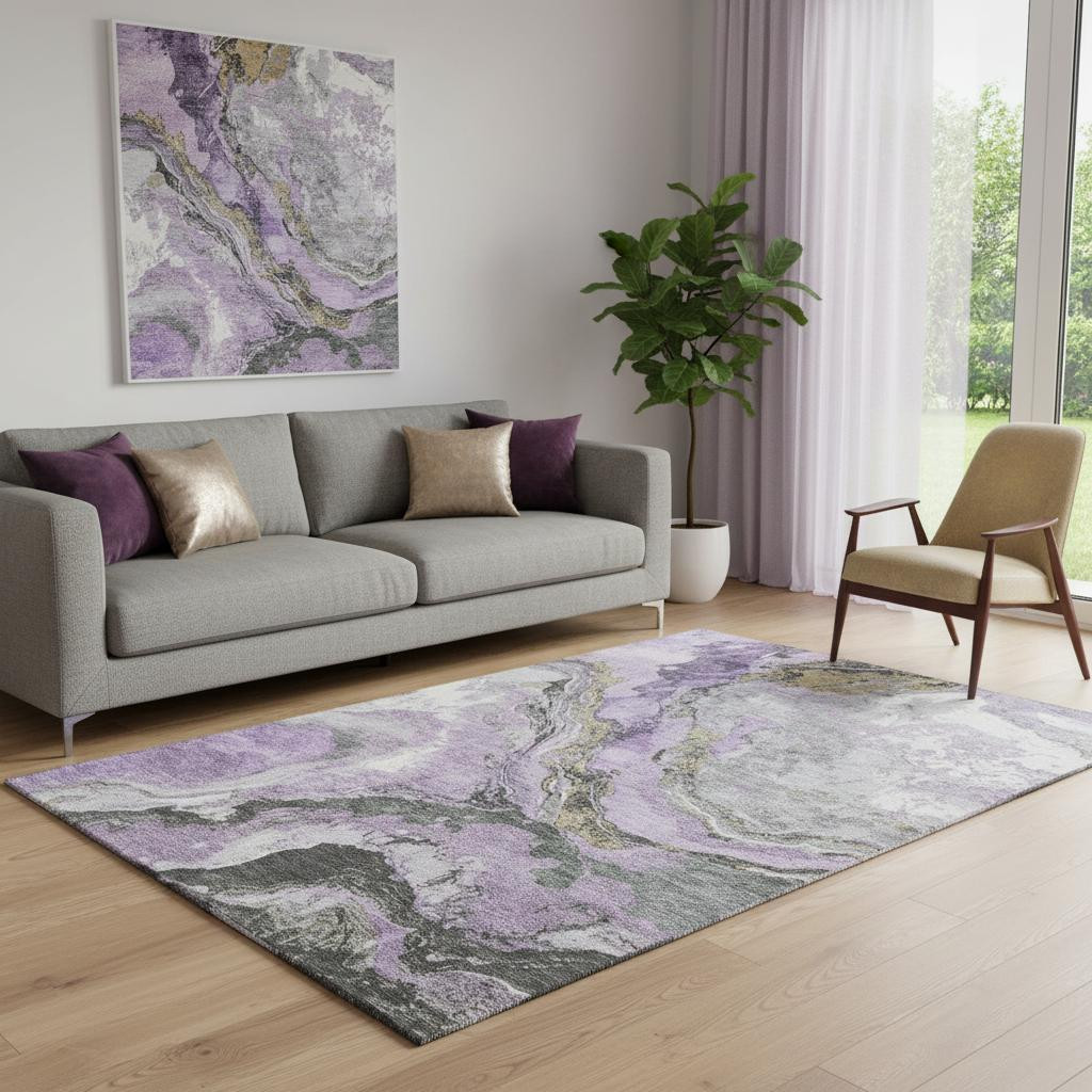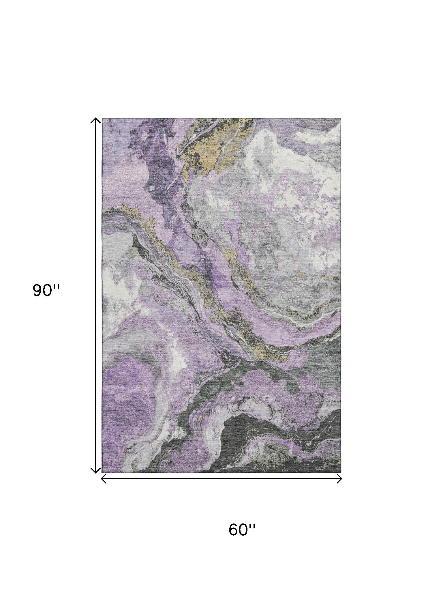 Set an inviting tone in your space with this 5-foot x 8-foot lavender gray and ivory abstract washable area rug with uv protection. Ideal for spaces with kids and pets, this rug is stain resistant to help repel dirt and spilled liquids. Built to last, this rug crafted from polyester fibers is known for its durability and long lasting appeal. Rugs are a great way to showcase your style, hide imperfections, warm your home and reduce noise. This larger sized, transitional styled rug is ready to create a focal point or statement piece in your room. 60.00-inch h x 90.00-inch w x 0.39-inch d.