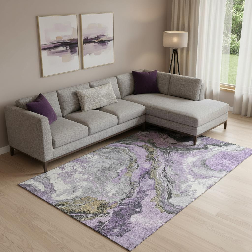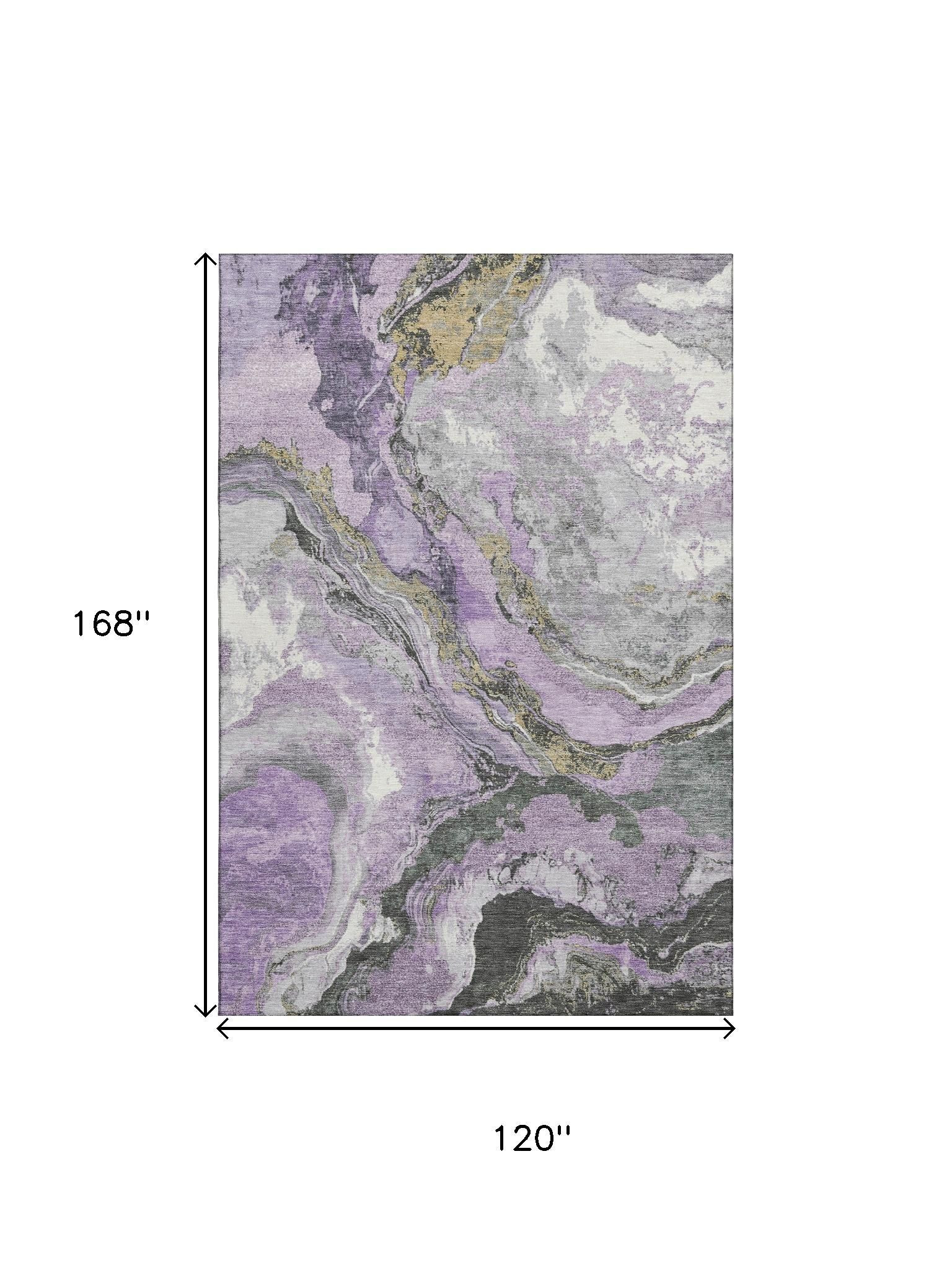 Add some artistry to your room with this 10-foot x 14-foot lavender gray and ivory abstract washable area rug with uv protection. Ideal for spaces with kids and pets, this rug is stain resistant to help repel dirt and spilled liquids. Built to last, this rug crafted from polyester fibers is known for its durability and long lasting appeal. Rugs are a great way to showcase your style, hide imperfections, warm your home and reduce noise. This larger sized, transitional styled rug is ready to create a focal point or statement piece in your room. 120.00-inch h x 168.00-inch w x 0.39-inch d.