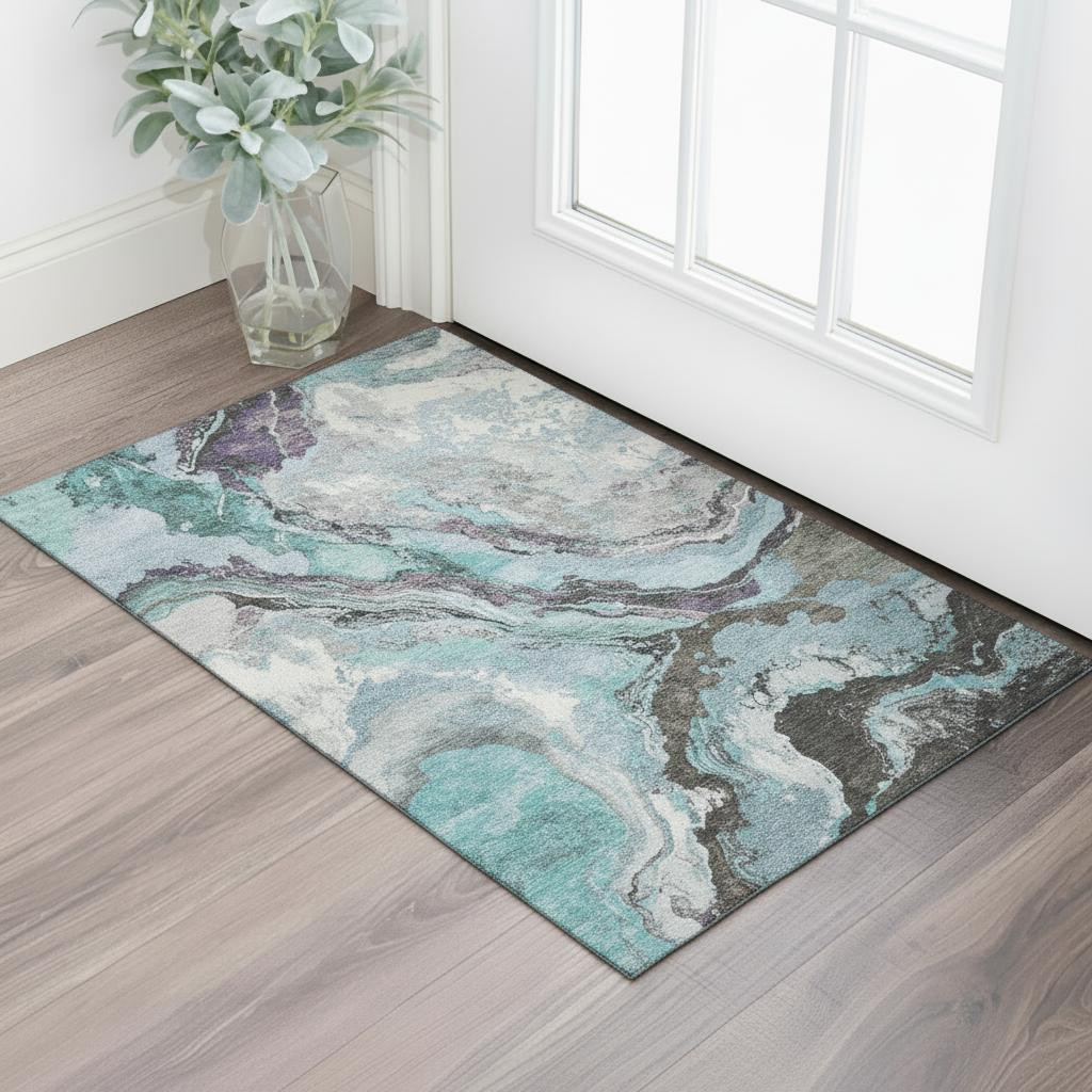 Add some artistry to your room with this 3-foot x 5-foot teal gray and ivory abstract washable area rug with uv protection. Ideal for spaces with kids and pets, this rug is stain resistant to help repel dirt and spilled liquids. Built to last, this rug crafted from polyester fibers is known for its durability and long lasting appeal. Rugs are a great way to showcase your style, hide imperfections, warm your home and reduce noise. This smaller sized, transitional styled rug is just what you need for your walkway, bedside, in front of door, cabinet, refrigerator, or chair. 36.00-inch h x 60.00-inch w x 0.39-inch d.