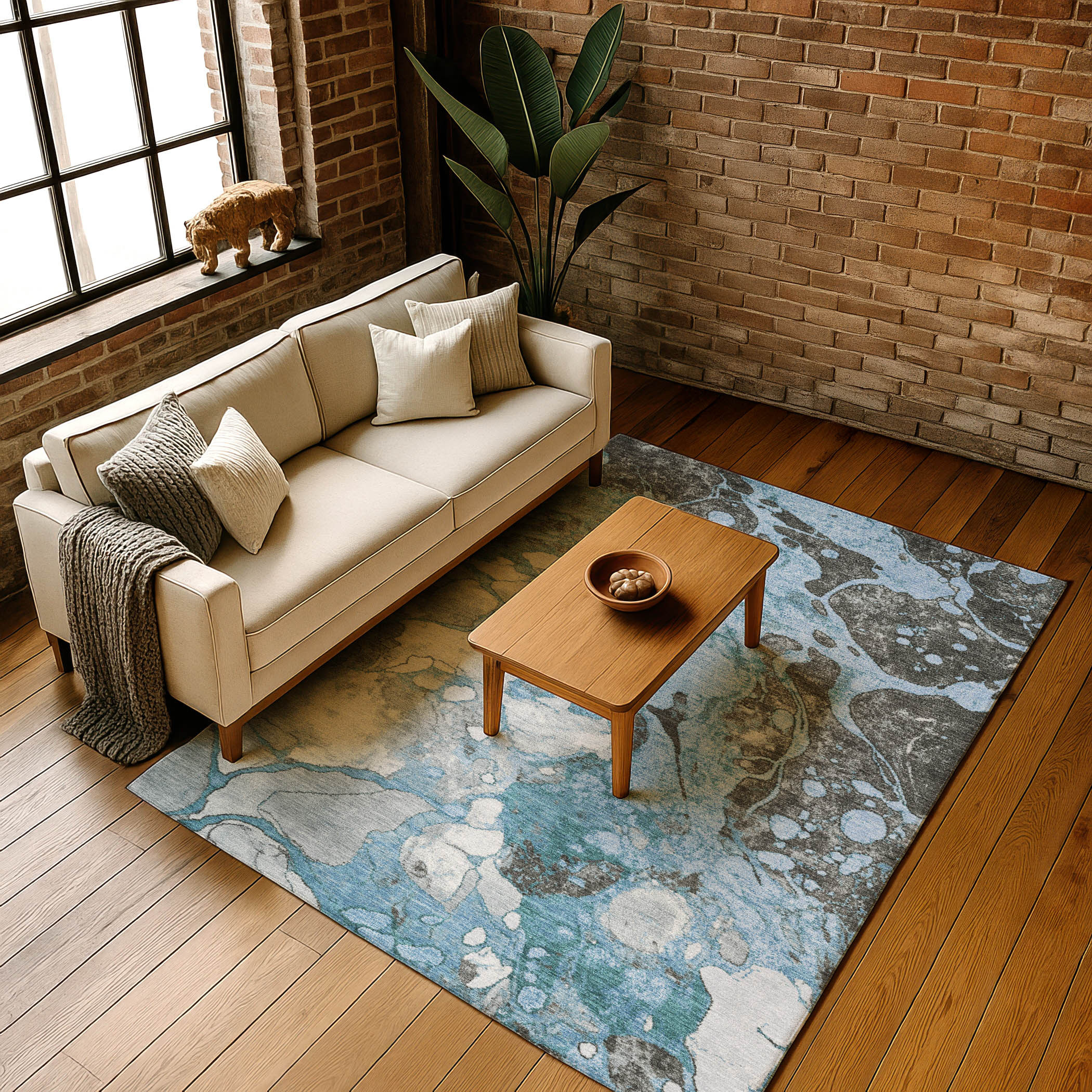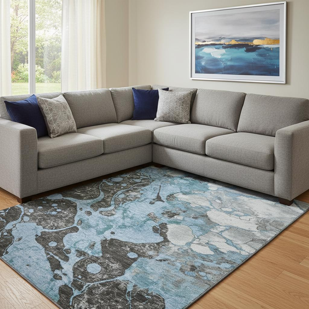 Add great coloration and comfortable texture to your space with this 8-foot x 10-foot blue gray and ivory abstract washable area rug with uv protection. Ideal for spaces with kids and pets, this rug is stain resistant to help repel dirt and spilled liquids. Built to last, this rug crafted from polyester fibers is known for its durability and long lasting appeal. Rugs are a great way to showcase your style, hide imperfections, warm your home and reduce noise. This larger sized, transitional styled rug is ready to create a focal point or statement piece in your room. 96.00-inch h x 120.00-inch w x 0.39-inch d.