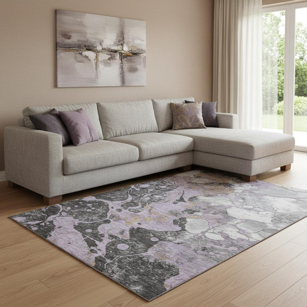 Add great coloration and comfortable texture to your space with this 8-foot x 10-foot lavender beige and gray abstract washable area rug with uv protection. Ideal for spaces with kids and pets, this rug is stain resistant to help repel dirt and spilled liquids. Built to last, this rug crafted from polyester fibers is known for its durability and long lasting appeal. Rugs are a great way to showcase your style, hide imperfections, warm your home and reduce noise. This larger sized, transitional styled rug is ready to create a focal point or statement piece in your room. 96.00-inch h x 120.00-inch w x 0.39-inch d.