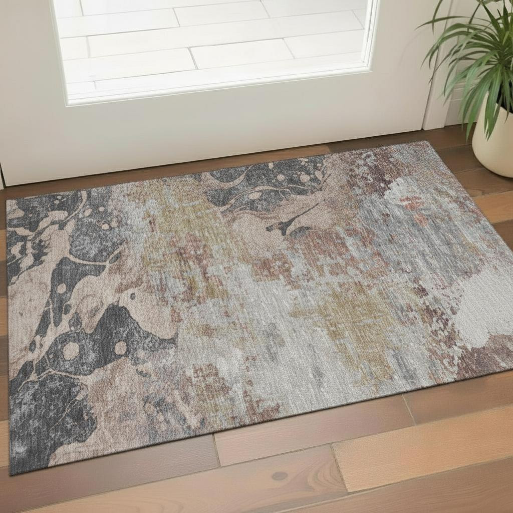 Add some artistry to your room with this 3-foot x 5-foot coffee gray and ivory abstract washable area rug with uv protection. Ideal for spaces with kids and pets, this rug is stain resistant to help repel dirt and spilled liquids. Built to last, this rug crafted from polyester fibers is known for its durability and long lasting appeal. Rugs are a great way to showcase your style, hide imperfections, warm your home and reduce noise. This smaller sized, transitional styled rug is just what you need for your walkway, bedside, in front of door, cabinet, refrigerator, or chair. 36.00-inch h x 60.00-inch w x 0.39-inch d.