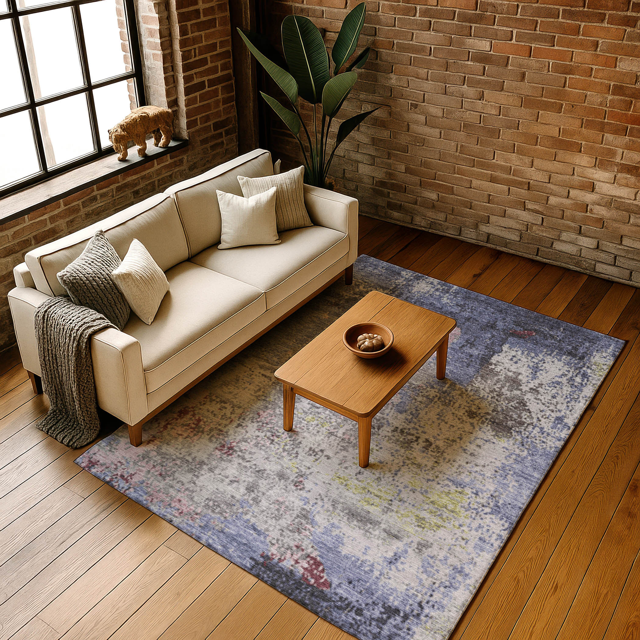 Add some artistry to your room with this 3-foot x 5-foot blue pink and ivory abstract washable area rug with uv protection. Ideal for spaces with kids and pets, this rug is stain resistant to help repel dirt and spilled liquids. Built to last, this rug crafted from polyester fibers is known for its durability and long lasting appeal. Rugs are a great way to showcase your style, hide imperfections, warm your home and reduce noise. This smaller sized, transitional styled rug is just what you need for your walkway, bedside, in front of door, cabinet, refrigerator, or chair. 36.00-inch h x 60.00-inch w x 0.39-inch d.