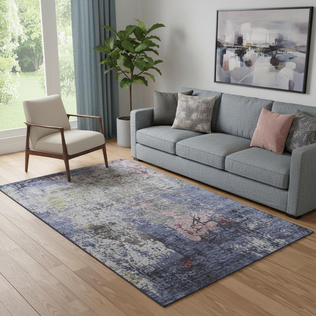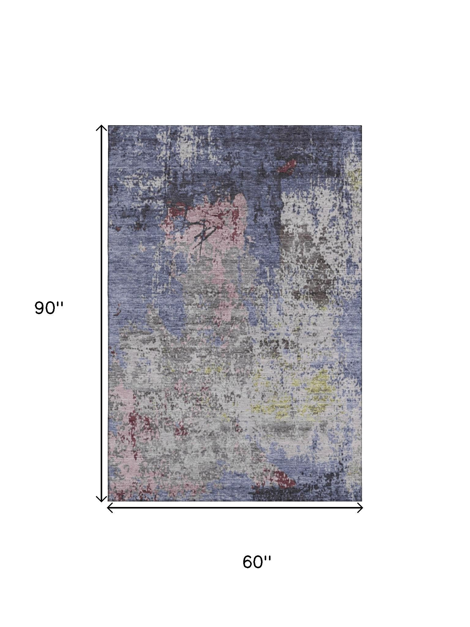 Add great coloration and comfortable texture to your space with this 5-foot x 8-foot blue pink and ivory abstract washable area rug with uv protection. Ideal for spaces with kids and pets, this rug is stain resistant to help repel dirt and spilled liquids. Built to last, this rug crafted from polyester fibers is known for its durability and long lasting appeal. Rugs are a great way to showcase your style, hide imperfections, warm your home and reduce noise. This larger sized, transitional styled rug is ready to create a focal point or statement piece in your room. 60.00-inch h x 90.00-inch w x 0.39-inch d.