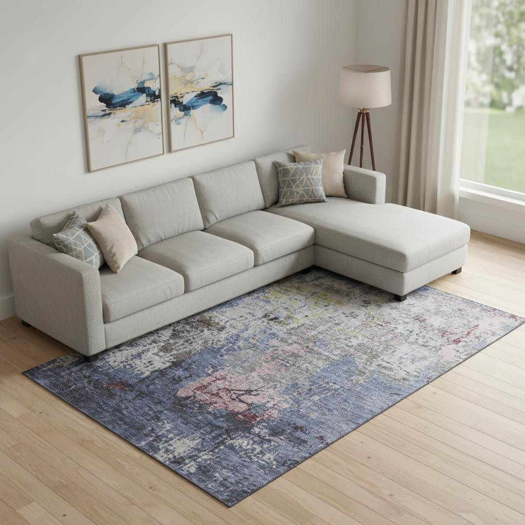 Add some artistry to your room with this 9-foot x 12-foot blue pink and ivory abstract washable area rug with uv protection. Ideal for spaces with kids and pets, this rug is stain resistant to help repel dirt and spilled liquids. Built to last, this rug crafted from polyester fibers is known for its durability and long lasting appeal. Rugs are a great way to showcase your style, hide imperfections, warm your home and reduce noise. This larger sized, transitional styled rug is ready to create a focal point or statement piece in your room. 108.00-inch h x 144.00-inch w x 0.39-inch d.