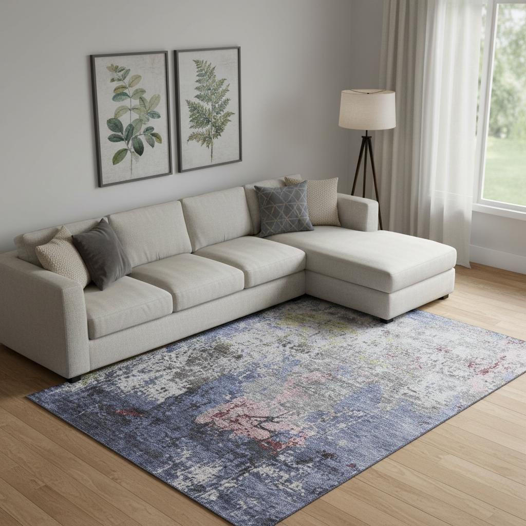 Add great coloration and comfortable texture to your space with this 10-foot x 14-foot blue pink and ivory abstract washable area rug with uv protection. Ideal for spaces with kids and pets, this rug is stain resistant to help repel dirt and spilled liquids. Built to last, this rug crafted from polyester fibers is known for its durability and long lasting appeal. Rugs are a great way to showcase your style, hide imperfections, warm your home and reduce noise. This larger sized, transitional styled rug is ready to create a focal point or statement piece in your room. 120.00-inch h x 168.00-inch w x 0.39-inch d.