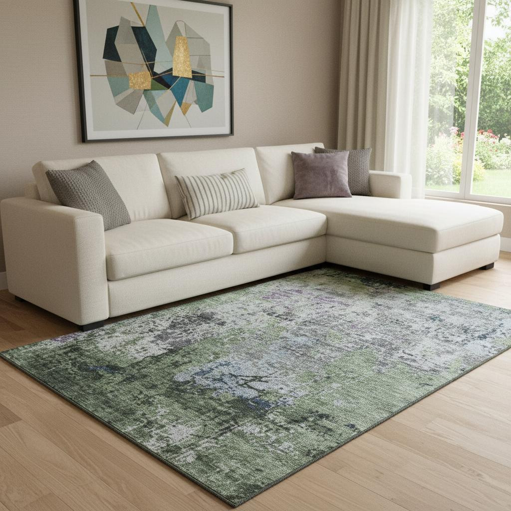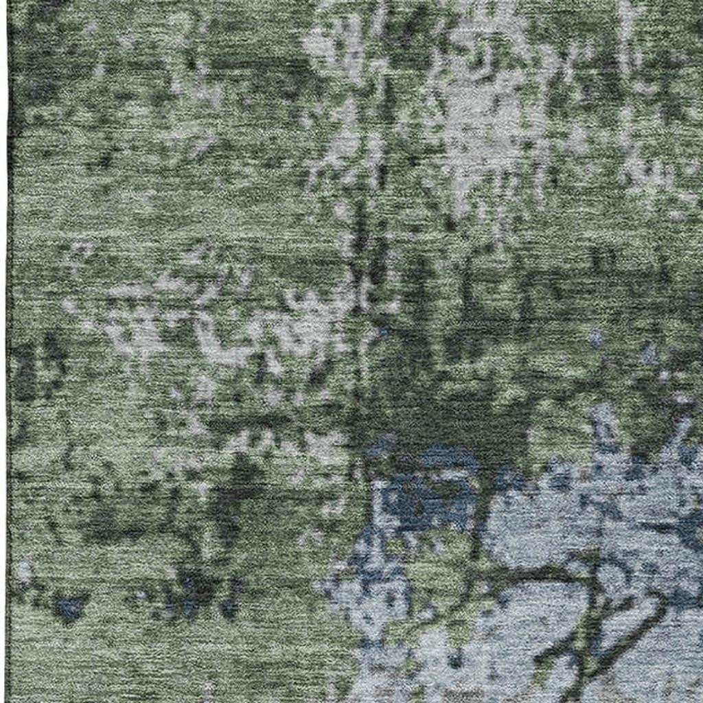 This 8-foot x 10-foot fern green gray and ivory abstract washable area rug with uv protection, is a great way to add warmth to a room. Ideal for spaces with kids and pets, this rug is stain resistant to help repel dirt and spilled liquids. Built to last, this rug crafted from polyester fibers is known for its durability and long lasting appeal. Rugs are a great way to showcase your style, hide imperfections, warm your home and reduce noise. This larger sized, transitional styled rug is ready to create a focal point or statement piece in your room. 96.00-inch h x 120.00-inch w x 0.39-inch d.