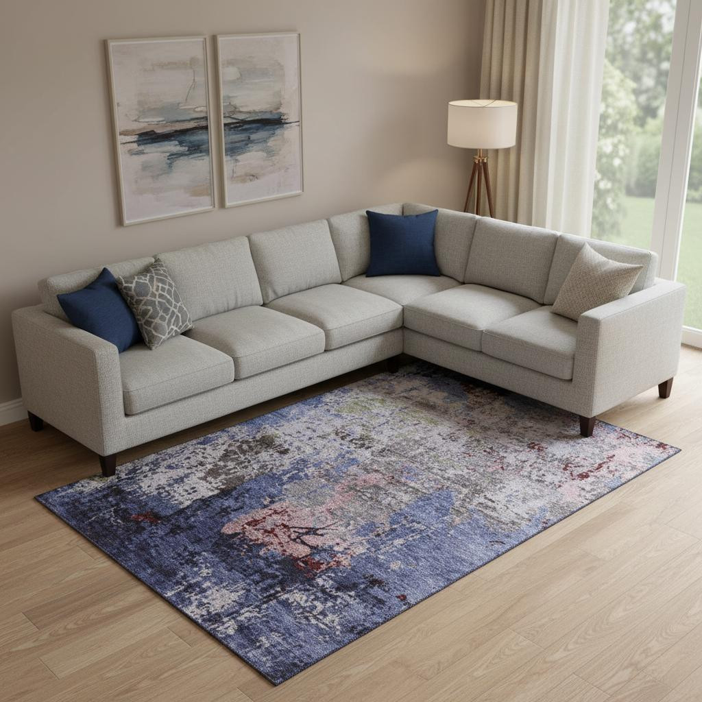 Add some artistry to your room with this 10-foot x 14-foot plum gray and ivory abstract washable area rug with uv protection. Ideal for spaces with kids and pets, this rug is stain resistant to help repel dirt and spilled liquids. Built to last, this rug crafted from polyester fibers is known for its durability and long lasting appeal. Rugs are a great way to showcase your style, hide imperfections, warm your home and reduce noise. This larger sized, transitional styled rug is ready to create a focal point or statement piece in your room. 120.00-inch h x 168.00-inch w x 0.39-inch d.