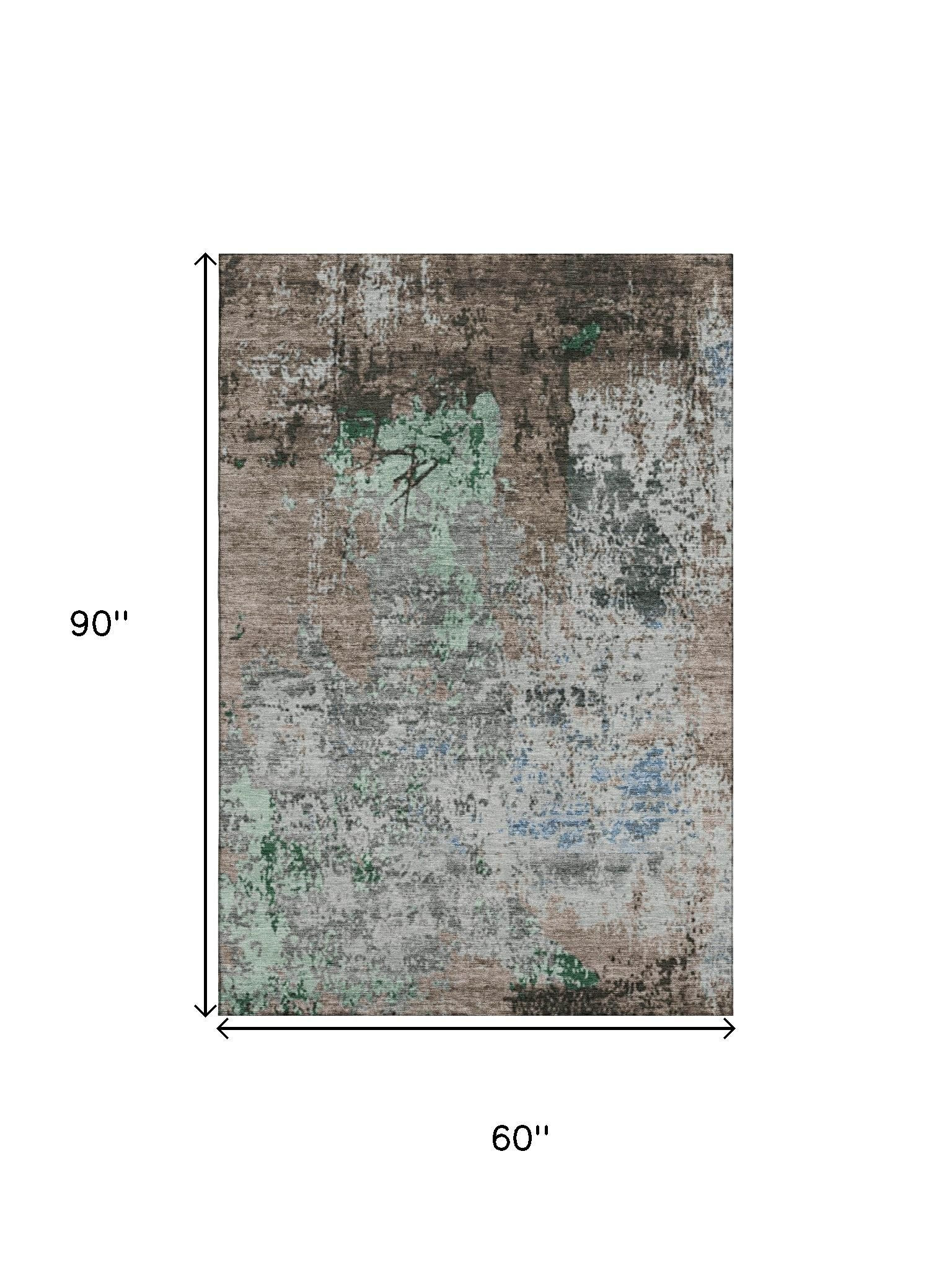 Add great coloration and comfortable texture to your space with this 5-foot x 8-foot taupe brown and ivory abstract washable area rug with uv protection. Ideal for spaces with kids and pets, this rug is stain resistant to help repel dirt and spilled liquids. Built to last, this rug crafted from polyester fibers is known for its durability and long lasting appeal. Rugs are a great way to showcase your style, hide imperfections, warm your home and reduce noise. This larger sized, transitional styled rug is ready to create a focal point or statement piece in your room. 60.00-inch h x 90.00-inch w x 0.39-inch d.
