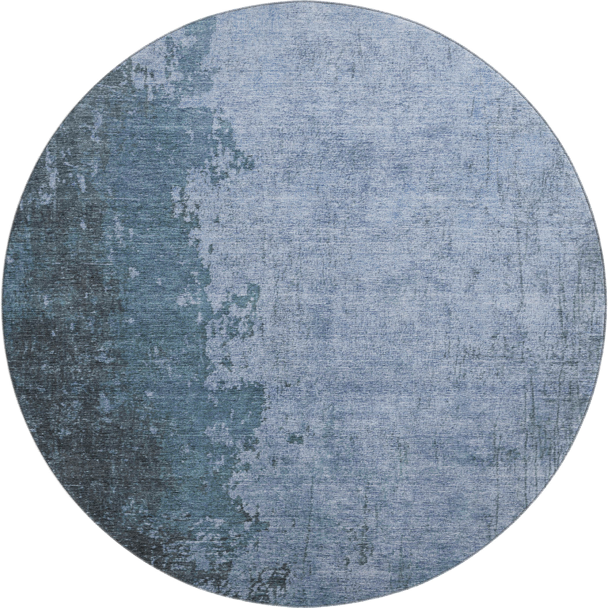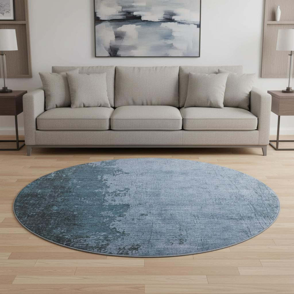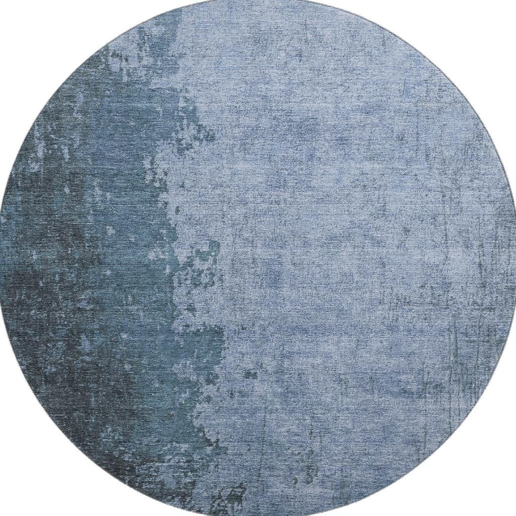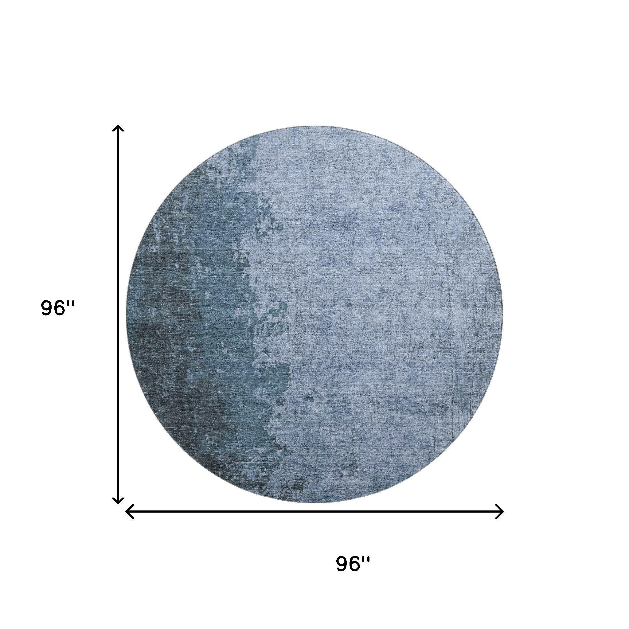 Add some artistry to your room with this 8-foot blue and gray abstract washable round rug with uv protection. Ideal for spaces with kids and pets, this rug is stain resistant to help repel dirt and spilled liquids. Built to last, this rug crafted from polyester fibers is known for its durability and long lasting appeal. Rugs are a great way to showcase your style, hide imperfections, warm your home and reduce noise. This larger sized, transitional styled rug is ready to create a focal point or statement piece in your room. 96.00-inch h x 96.00-inch w x 0.39-inch d.
