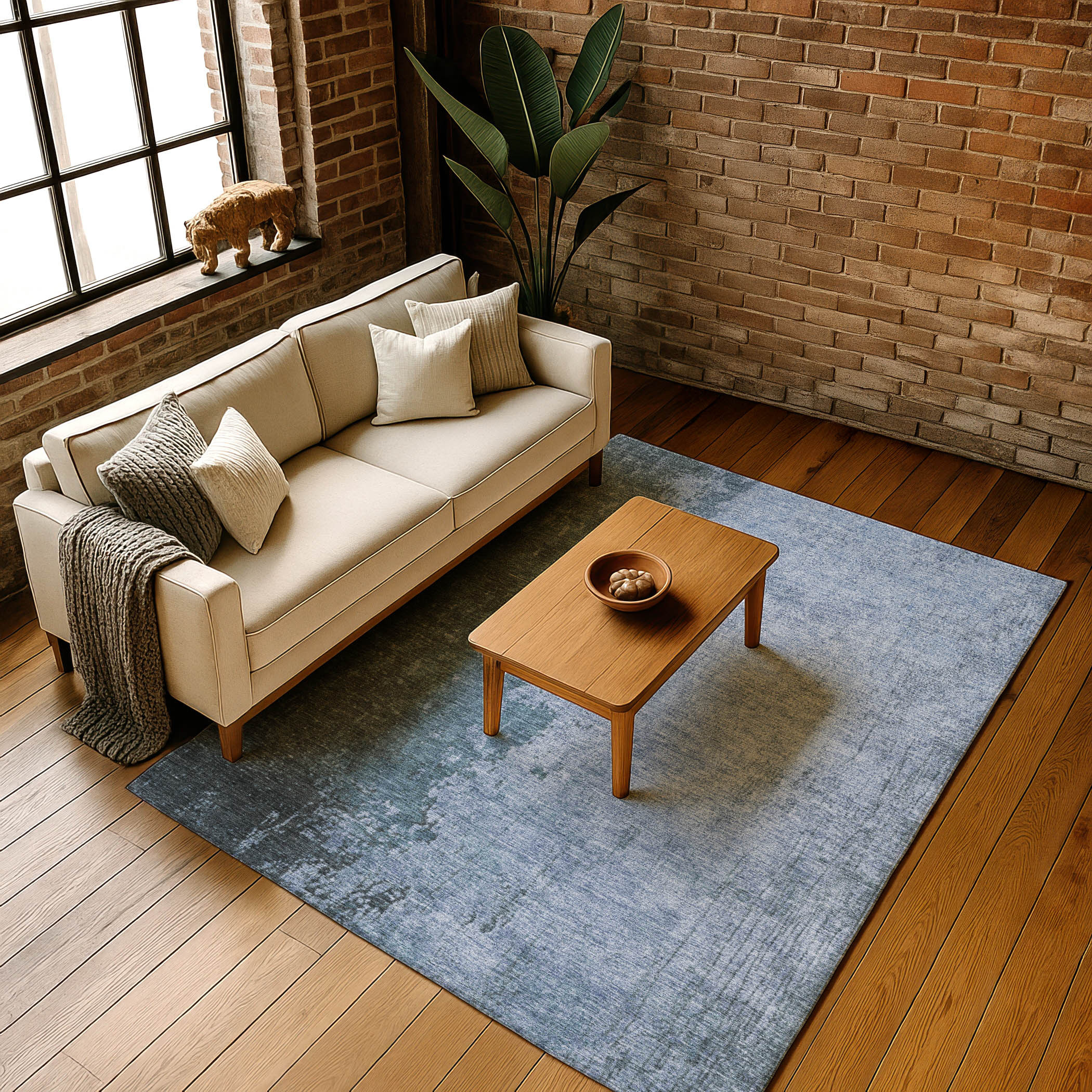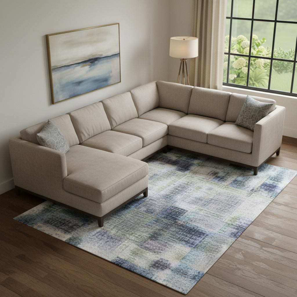 Add some artistry to your room with this 9-foot x 12-foot blue and gray abstract washable area rug with uv protection. Ideal for spaces with kids and pets, this rug is stain resistant to help repel dirt and spilled liquids. Built to last, this rug crafted from polyester fibers is known for its durability and long lasting appeal. Rugs are a great way to showcase your style, hide imperfections, warm your home and reduce noise. This larger sized, transitional styled rug is ready to create a focal point or statement piece in your room. 108.00-inch h x 144.00-inch w x 0.39-inch d.