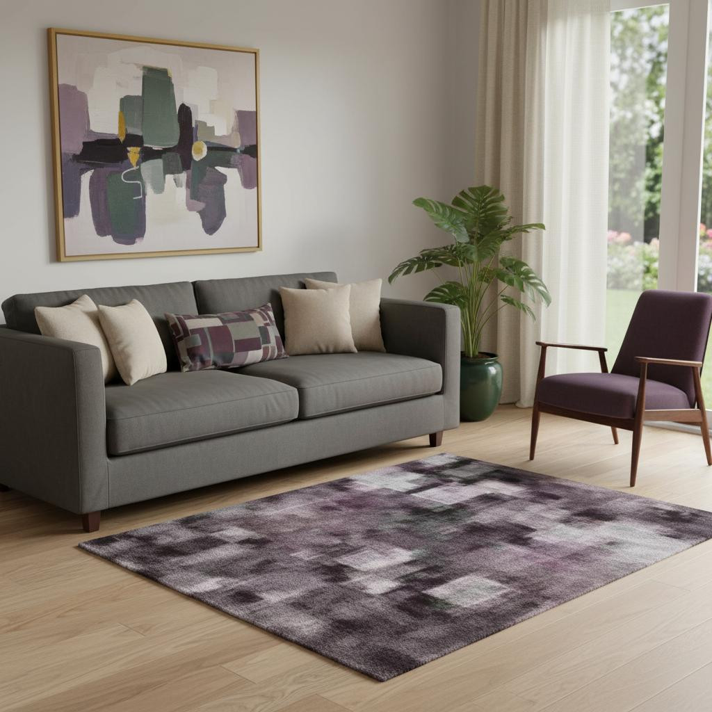Add great coloration and comfortable texture to your space with this 5-foot x 8-foot lavender and gray abstract washable area rug with uv protection. Ideal for spaces with kids and pets, this rug is stain resistant to help repel dirt and spilled liquids. Built to last, this rug crafted from polyester fibers is known for its durability and long lasting appeal. Rugs are a great way to showcase your style, hide imperfections, warm your home and reduce noise. This larger sized, transitional styled rug is ready to create a focal point or statement piece in your room. 60.00-inch h x 90.00-inch w x 0.39-inch d.