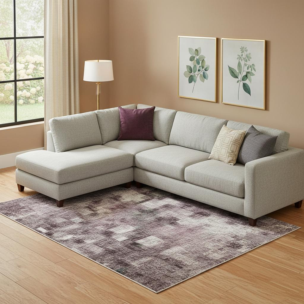 This 10-foot x 14-foot lavender and gray abstract washable area rug with uv protection, is a great way to add warmth to a room. Ideal for spaces with kids and pets, this rug is stain resistant to help repel dirt and spilled liquids. Built to last, this rug crafted from polyester fibers is known for its durability and long lasting appeal. Rugs are a great way to showcase your style, hide imperfections, warm your home and reduce noise. This larger sized, transitional styled rug is ready to create a focal point or statement piece in your room. 120.00-inch h x 168.00-inch w x 0.39-inch d.