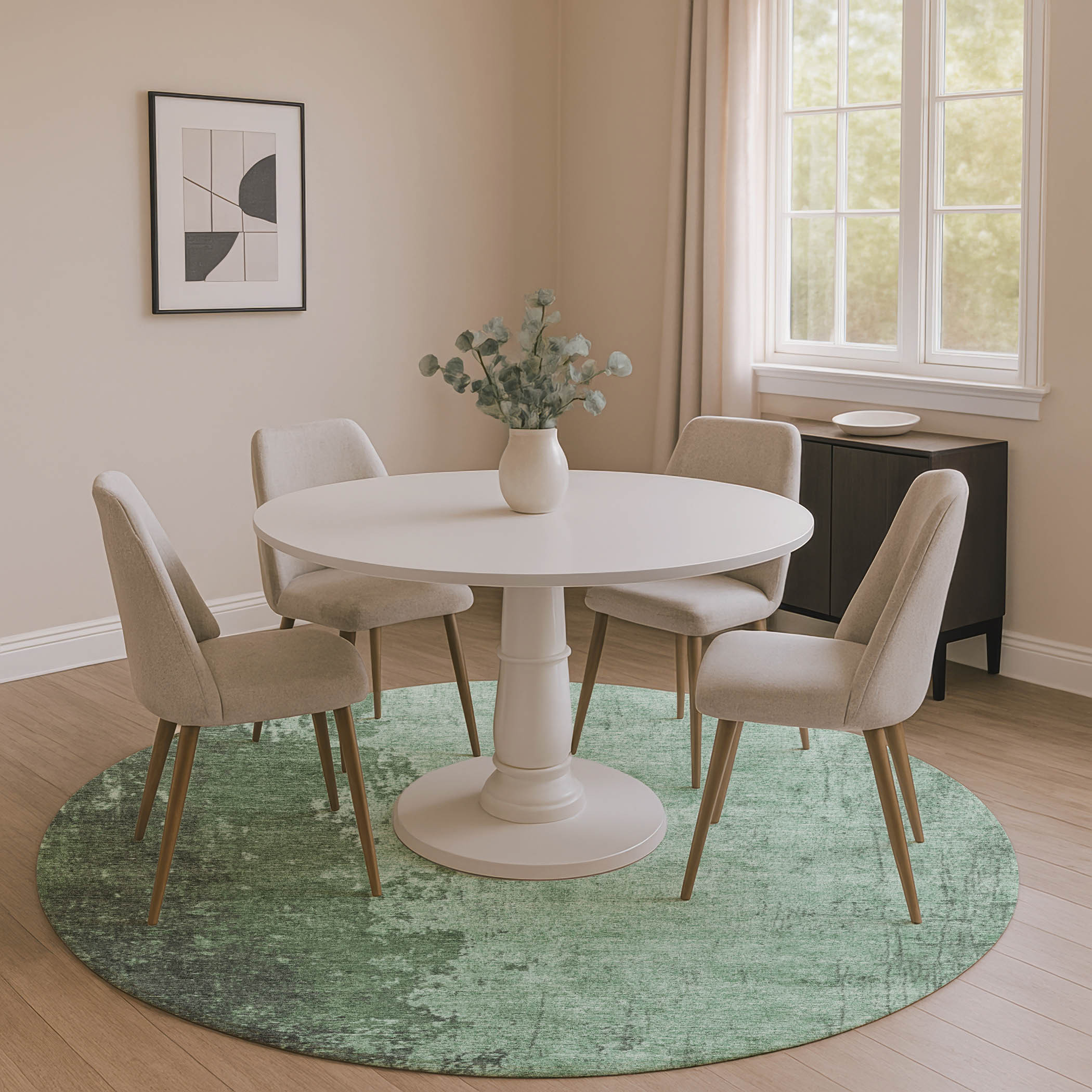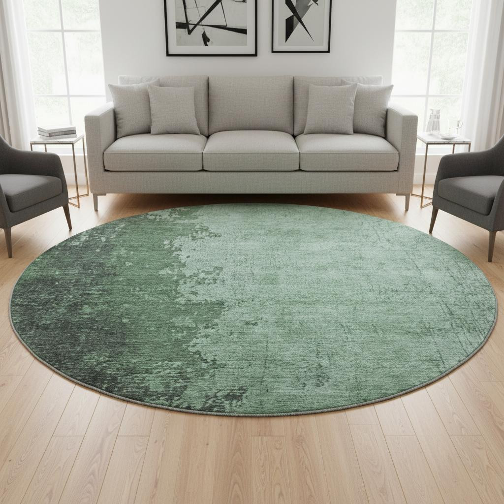 Add some artistry to your room with this 8-foot pale aqua and gray abstract washable round rug with uv protection. Ideal for spaces with kids and pets, this rug is stain resistant to help repel dirt and spilled liquids. Built to last, this rug crafted from polyester fibers is known for its durability and long lasting appeal. Rugs are a great way to showcase your style, hide imperfections, warm your home and reduce noise. This larger sized, transitional styled rug is ready to create a focal point or statement piece in your room. 96.00-inch h x 96.00-inch w x 0.39-inch d.