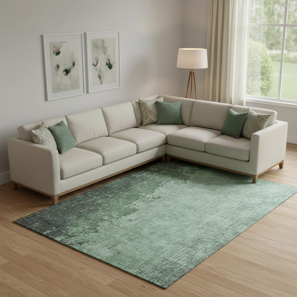 This 10-foot x 14-foot pale aqua and gray abstract washable area rug with uv protection, is a great way to add warmth to a room. Ideal for spaces with kids and pets, this rug is stain resistant to help repel dirt and spilled liquids. Built to last, this rug crafted from polyester fibers is known for its durability and long lasting appeal. Rugs are a great way to showcase your style, hide imperfections, warm your home and reduce noise. This larger sized, transitional styled rug is ready to create a focal point or statement piece in your room. 120.00-inch h x 168.00-inch w x 0.39-inch d.
