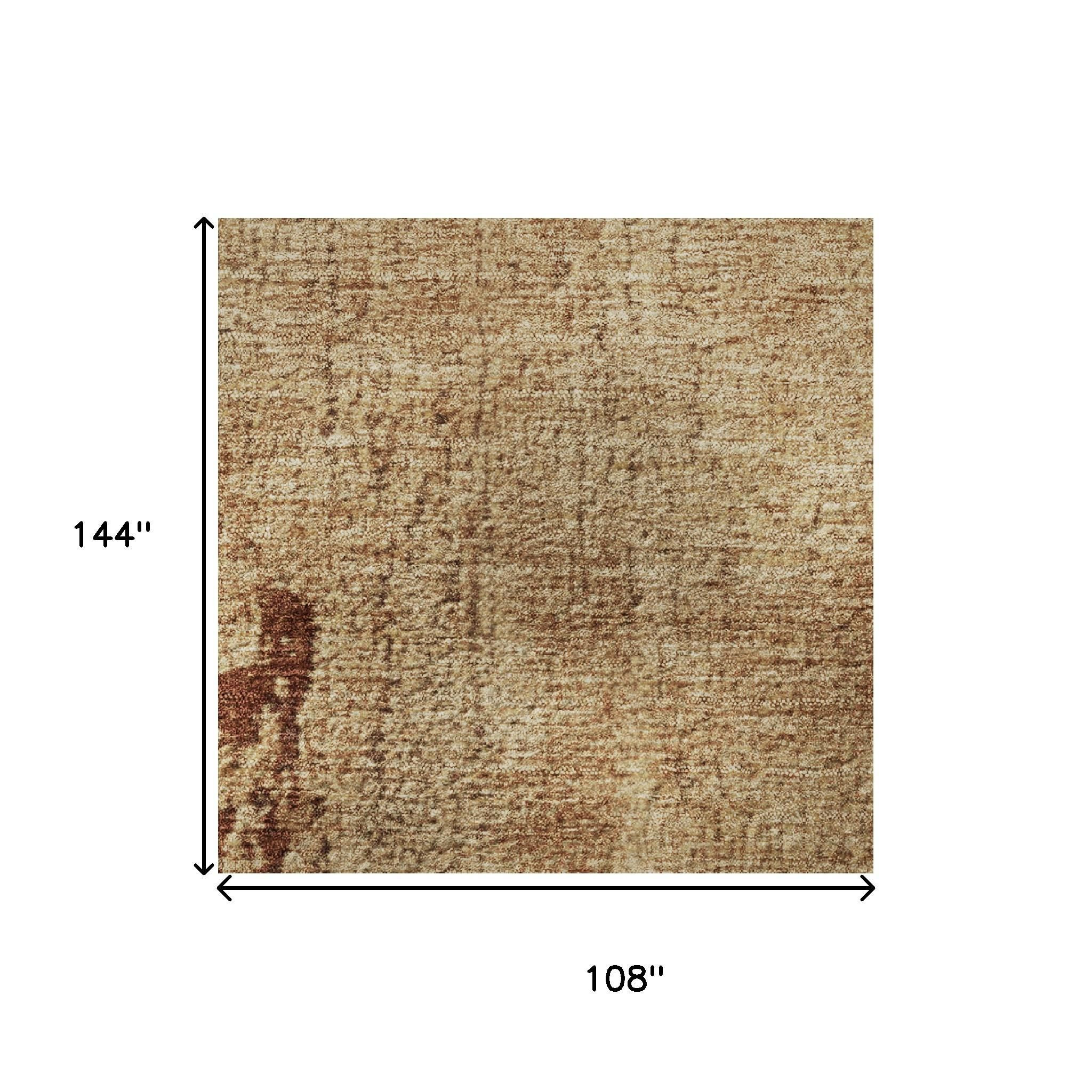 Set an inviting tone in your space with this 9-foot x 12-foot tan and beige abstract washable area rug with uv protection. Ideal for spaces with kids and pets, this rug is stain resistant to help repel dirt and spilled liquids. Built to last, this rug crafted from polyester fibers is known for its durability and long lasting appeal. Rugs are a great way to showcase your style, hide imperfections, warm your home and reduce noise. This larger sized, transitional styled rug is ready to create a focal point or statement piece in your room. 108.00-inch h x 144.00-inch w x 0.39-inch d.