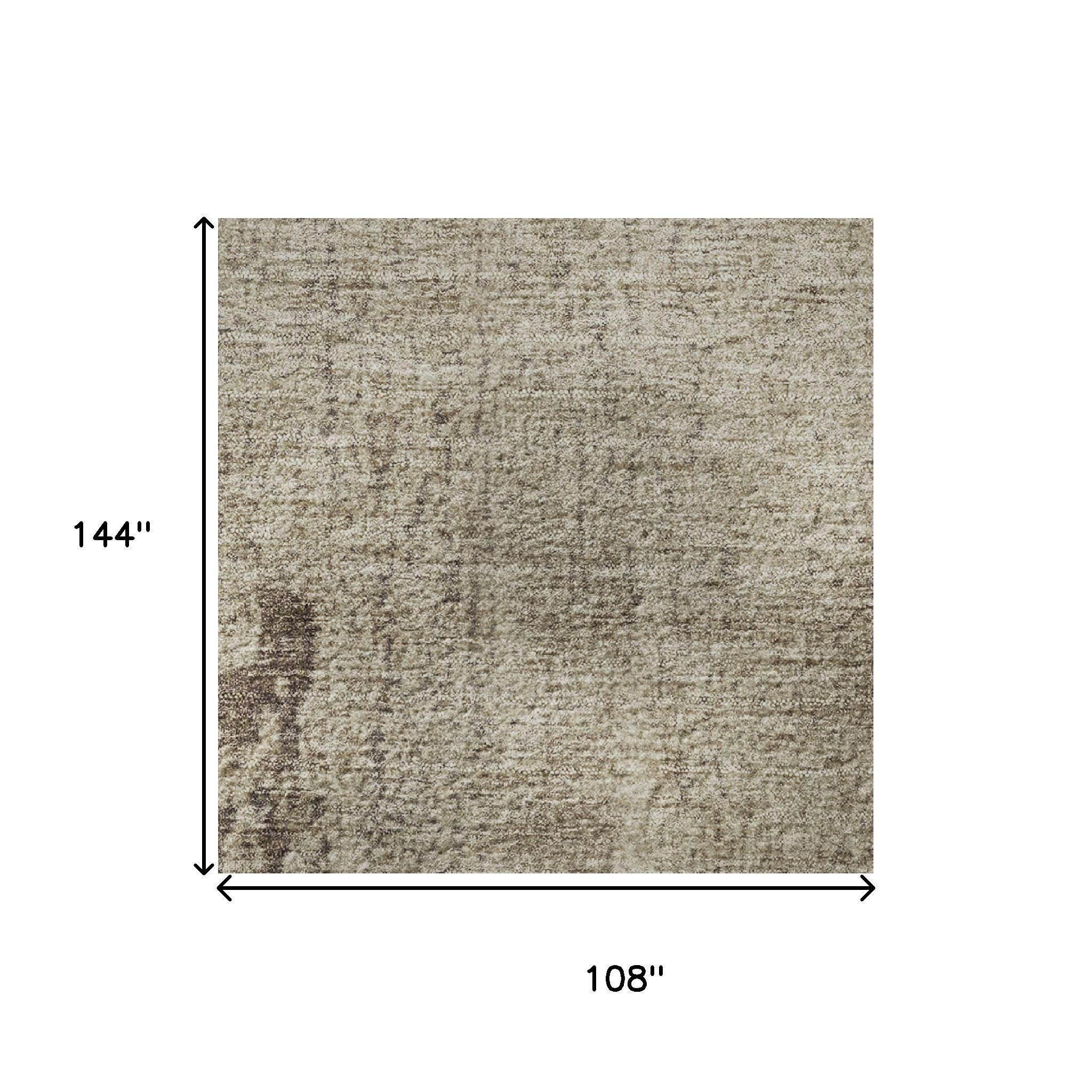Set an inviting tone in your space with this 9-foot x 12-foot taupe and beige abstract washable area rug with uv protection. Ideal for spaces with kids and pets, this rug is stain resistant to help repel dirt and spilled liquids. Built to last, this rug crafted from polyester fibers is known for its durability and long lasting appeal. Rugs are a great way to showcase your style, hide imperfections, warm your home and reduce noise. This larger sized, transitional styled rug is ready to create a focal point or statement piece in your room. 108.00-inch h x 144.00-inch w x 0.39-inch d.