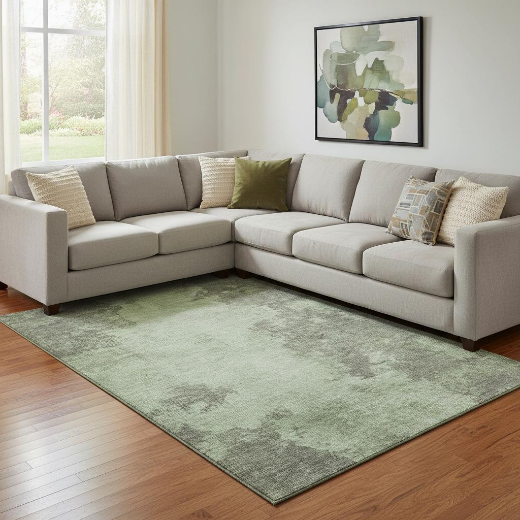 Add great coloration and comfortable texture to your space with this 8-foot x 10-foot artichoke green and gray abstract washable area rug with uv protection. Ideal for spaces with kids and pets, this rug is stain resistant to help repel dirt and spilled liquids. Built to last, this rug crafted from polyester fibers is known for its durability and long lasting appeal. Rugs are a great way to showcase your style, hide imperfections, warm your home and reduce noise. This larger sized, transitional styled rug is ready to create a focal point or statement piece in your room. 96.00-inch h x 120.00-inch w x 0.39-inch d.