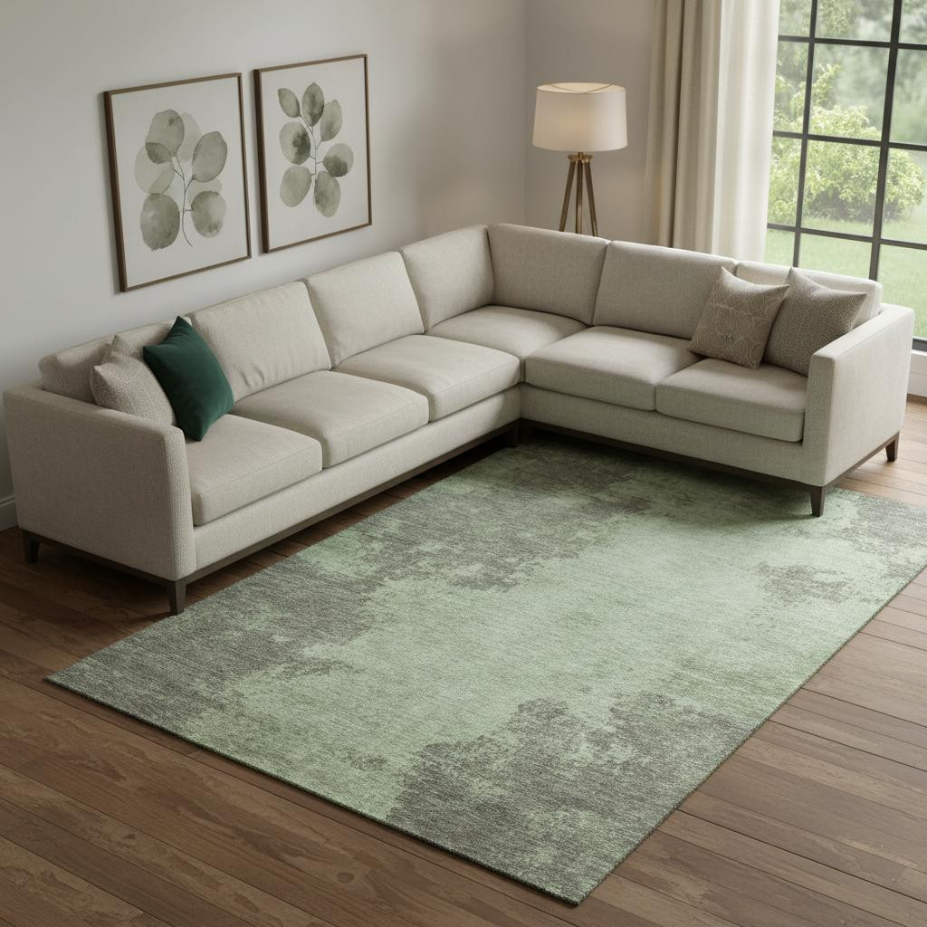 Set an inviting tone in your space with this 9-foot x 12-foot artichoke green and gray abstract washable area rug with uv protection. Ideal for spaces with kids and pets, this rug is stain resistant to help repel dirt and spilled liquids. Built to last, this rug crafted from polyester fibers is known for its durability and long lasting appeal. Rugs are a great way to showcase your style, hide imperfections, warm your home and reduce noise. This larger sized, transitional styled rug is ready to create a focal point or statement piece in your room. 108.00-inch h x 144.00-inch w x 0.39-inch d.
