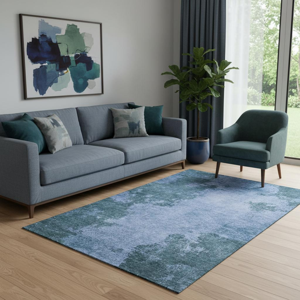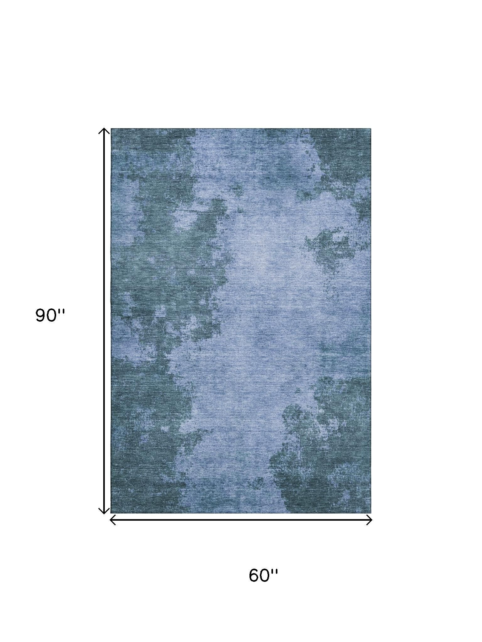 Set an inviting tone in your space with this 5-foot x 8-foot denim blue and sky blue abstract washable area rug with uv protection. Ideal for spaces with kids and pets, this rug is stain resistant to help repel dirt and spilled liquids. Built to last, this rug crafted from polyester fibers is known for its durability and long lasting appeal. Rugs are a great way to showcase your style, hide imperfections, warm your home and reduce noise. This larger sized, transitional styled rug is ready to create a focal point or statement piece in your room. 60.00-inch h x 90.00-inch w x 0.39-inch d.