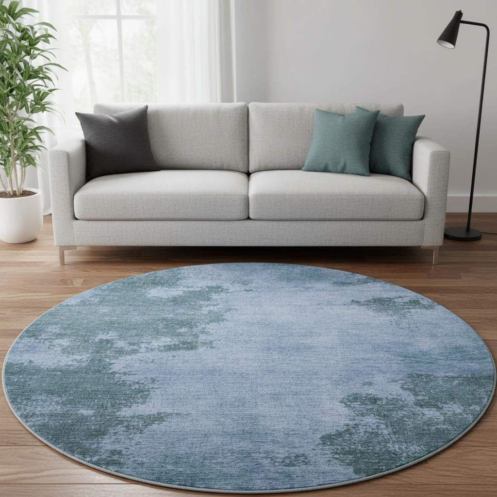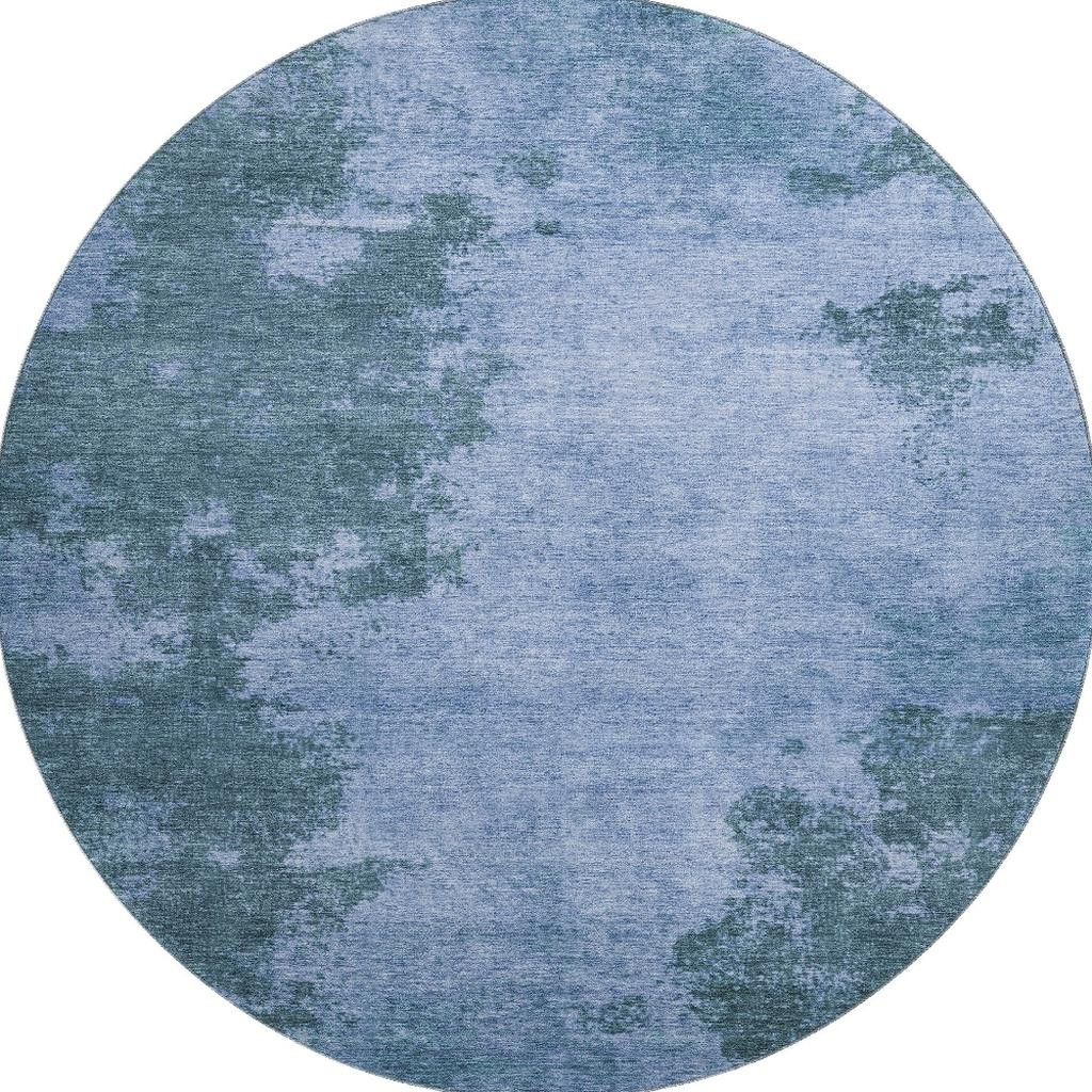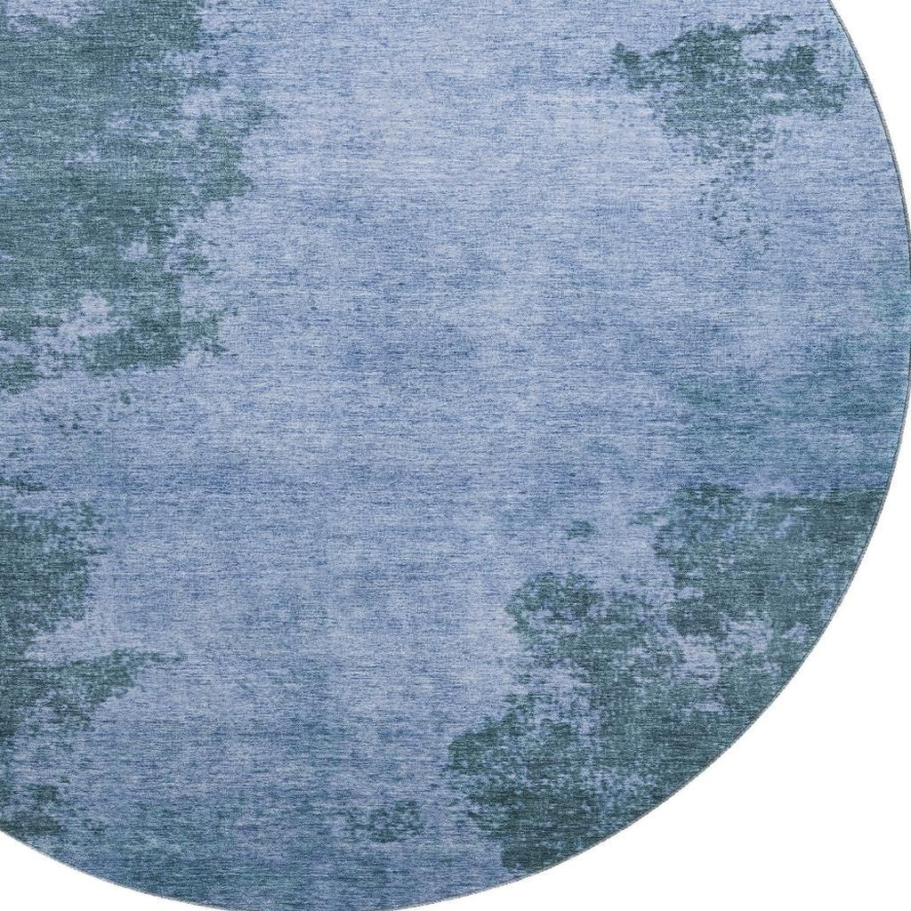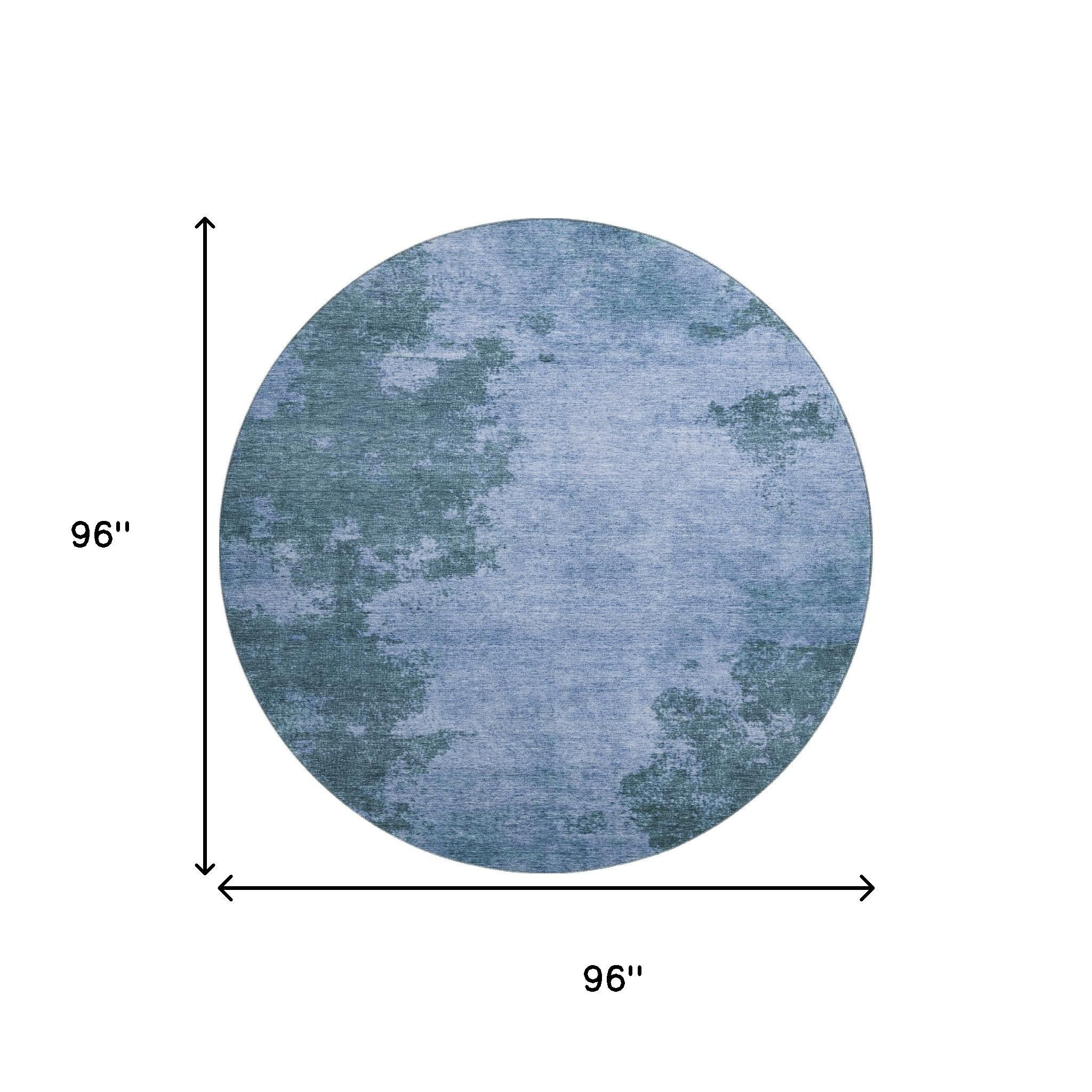 This 8-foot denim blue and sky blue abstract washable round rug with uv protection, is a great way to add warmth to a room. Ideal for spaces with kids and pets, this rug is stain resistant to help repel dirt and spilled liquids. Built to last, this rug crafted from polyester fibers is known for its durability and long lasting appeal. Rugs are a great way to showcase your style, hide imperfections, warm your home and reduce noise. This larger sized, transitional styled rug is ready to create a focal point or statement piece in your room. 96.00-inch h x 96.00-inch w x 0.39-inch d.