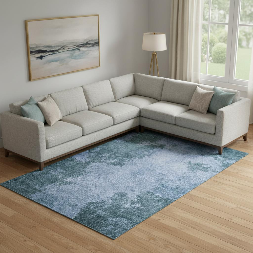 Set an inviting tone in your space with this 9-foot x 12-foot denim blue and sky blue abstract washable area rug with uv protection. Ideal for spaces with kids and pets, this rug is stain resistant to help repel dirt and spilled liquids. Built to last, this rug crafted from polyester fibers is known for its durability and long lasting appeal. Rugs are a great way to showcase your style, hide imperfections, warm your home and reduce noise. This larger sized, transitional styled rug is ready to create a focal point or statement piece in your room. 108.00-inch h x 144.00-inch w x 0.39-inch d.