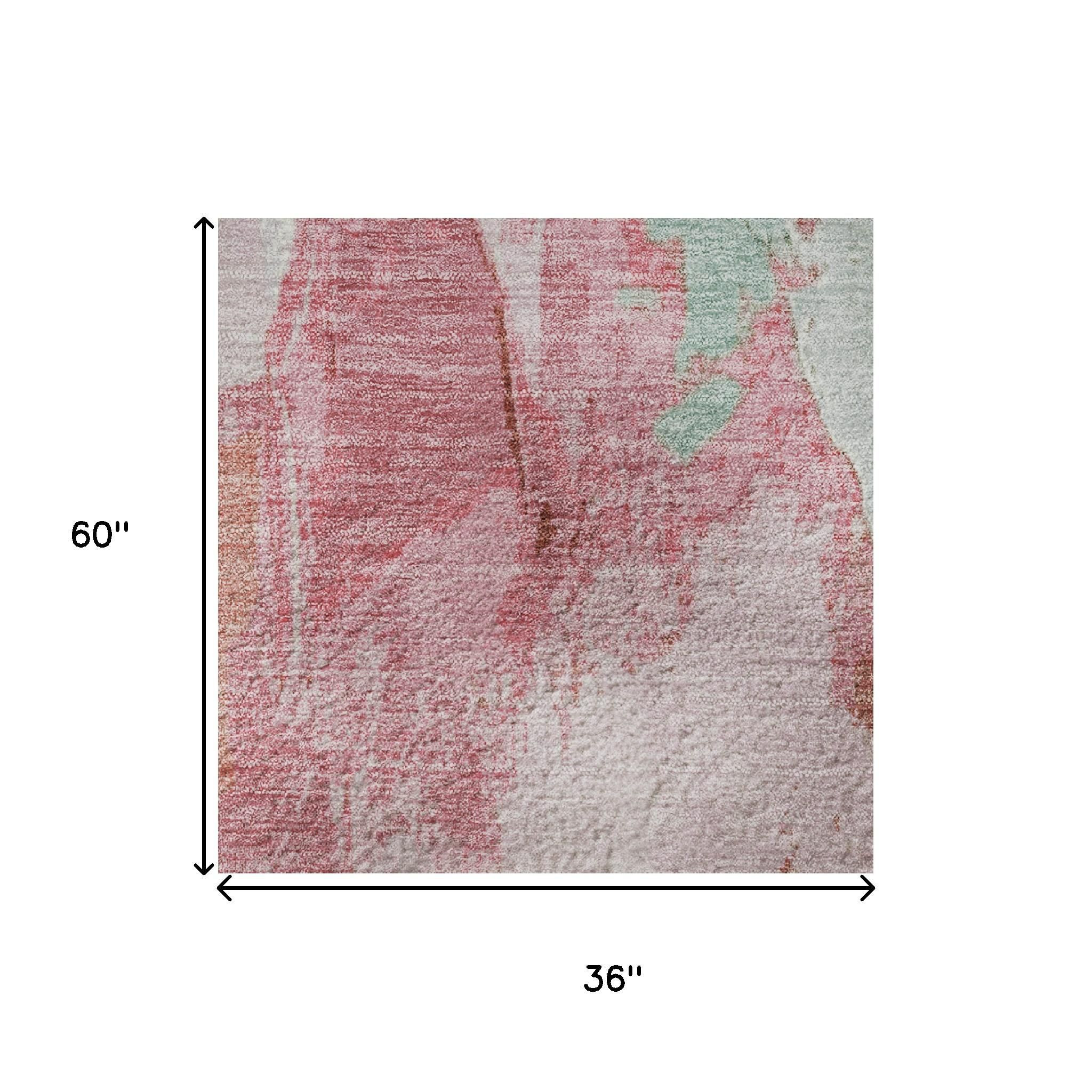 This 3-foot x 5-foot blush green and ivory abstract washable area rug with uv protection, is a great way to add warmth to a room. Ideal for spaces with kids and pets, this rug is stain resistant to help repel dirt and spilled liquids. Built to last, this rug crafted from polyester fibers is known for its durability and long lasting appeal. Rugs are a great way to showcase your style, hide imperfections, warm your home and reduce noise. This smaller sized, transitional styled rug is just what you need for your walkway, bedside, in front of door, cabinet, refrigerator, or chair. 36.00-inch h x 60.00-inch w x 0.39-inch d.