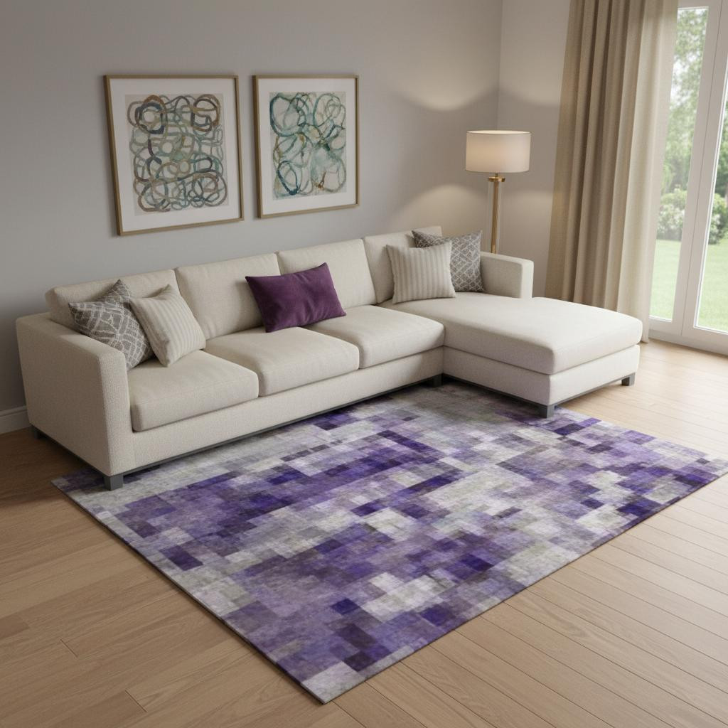 Add great coloration and comfortable texture to your space with this 9-foot x 12-foot purple green and ivory abstract washable area rug with uv protection. Ideal for spaces with kids and pets, this rug is stain resistant to help repel dirt and spilled liquids. Built to last, this rug crafted from polyester fibers is known for its durability and long lasting appeal. Rugs are a great way to showcase your style, hide imperfections, warm your home and reduce noise. This larger sized, transitional styled rug is ready to create a focal point or statement piece in your room. 108.00-inch h x 144.00-inch w x 0.39-inch d.