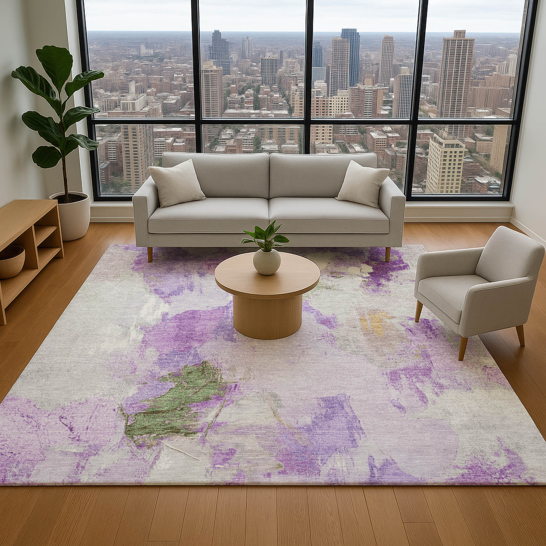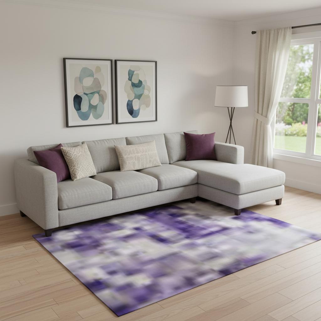 This 10-foot x 14-foot purple green and ivory abstract washable area rug with uv protection, is a great way to add warmth to a room. Ideal for spaces with kids and pets, this rug is stain resistant to help repel dirt and spilled liquids. Built to last, this rug crafted from polyester fibers is known for its durability and long lasting appeal. Rugs are a great way to showcase your style, hide imperfections, warm your home and reduce noise. This larger sized, transitional styled rug is ready to create a focal point or statement piece in your room. 120.00-inch h x 168.00-inch w x 0.39-inch d.