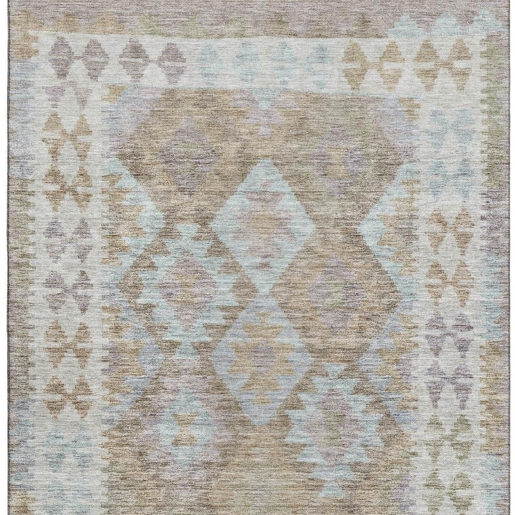 This 5-foot x 8-foot khaki and ivory tribal washable area rug with uv protection, is a great way to add warmth to a room. Ideal for spaces with kids and pets, this rug is stain resistant to help repel dirt and spilled liquids. Built to last, this rug crafted from polyester fibers is known for its durability and long lasting appeal. Rugs are a great way to showcase your style, hide imperfections, warm your home and reduce noise. This larger sized, transitional styled rug is ready to create a focal point or statement piece in your room. 60.00-inch h x 90.00-inch w x 0.39-inch d.