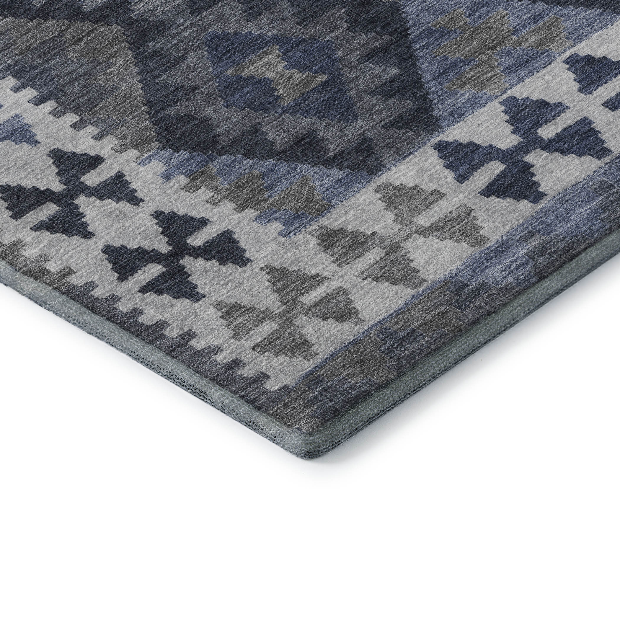Add some artistry to your room with this 10-foot x 14-foot navy blue and ivory tribal washable area rug with uv protection. Ideal for spaces with kids and pets, this rug is stain resistant to help repel dirt and spilled liquids. Built to last, this rug crafted from polyester fibers is known for its durability and long lasting appeal. Rugs are a great way to showcase your style, hide imperfections, warm your home and reduce noise. This larger sized, transitional styled rug is ready to create a focal point or statement piece in your room. 120.00-inch h x 168.00-inch w x 0.39-inch d.