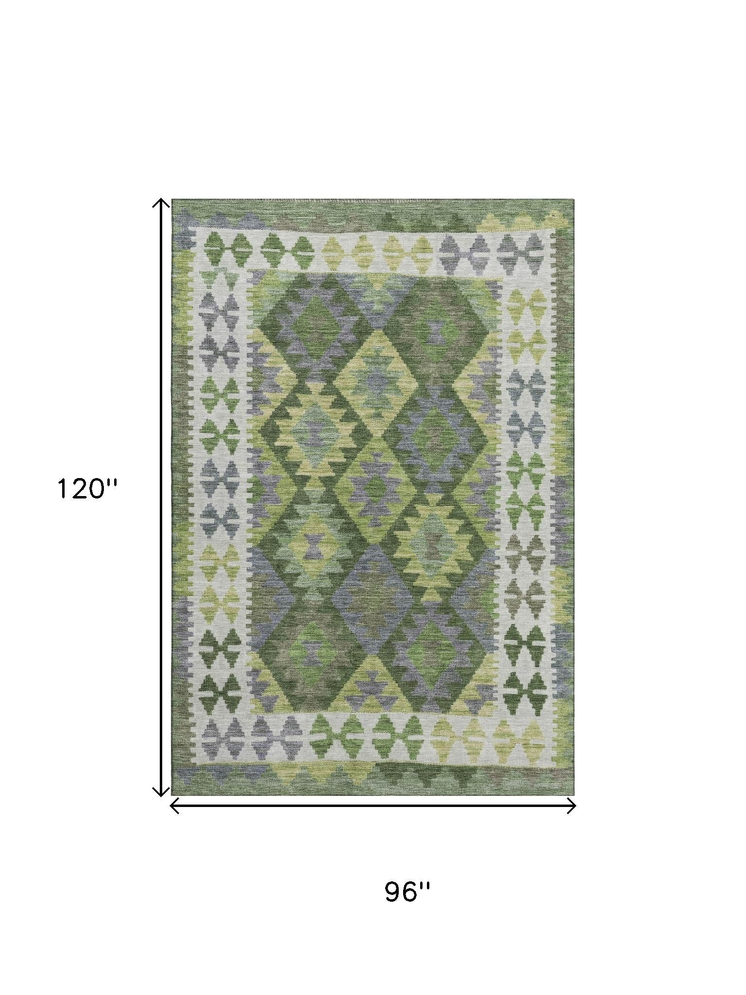 Add great coloration and comfortable texture to your space with this 8-foot x 10-foot olive green and ivory tribal washable area rug with uv protection. Ideal for spaces with kids and pets, this rug is stain resistant to help repel dirt and spilled liquids. Built to last, this rug crafted from polyester fibers is known for its durability and long lasting appeal. Rugs are a great way to showcase your style, hide imperfections, warm your home and reduce noise. This larger sized, transitional styled rug is ready to create a focal point or statement piece in your room. 96.00-inch h x 120.00-inch w x 0.39-inch d.