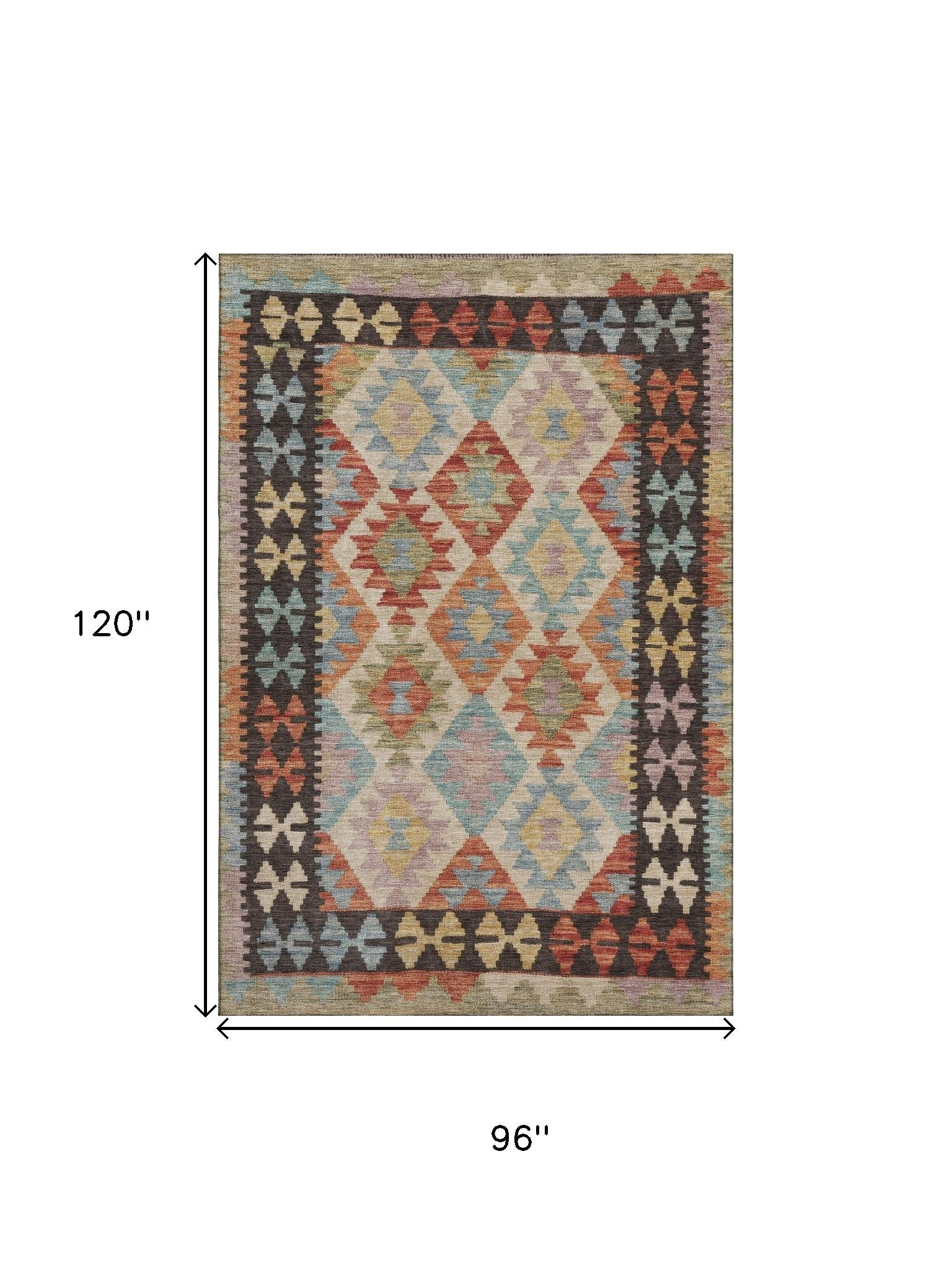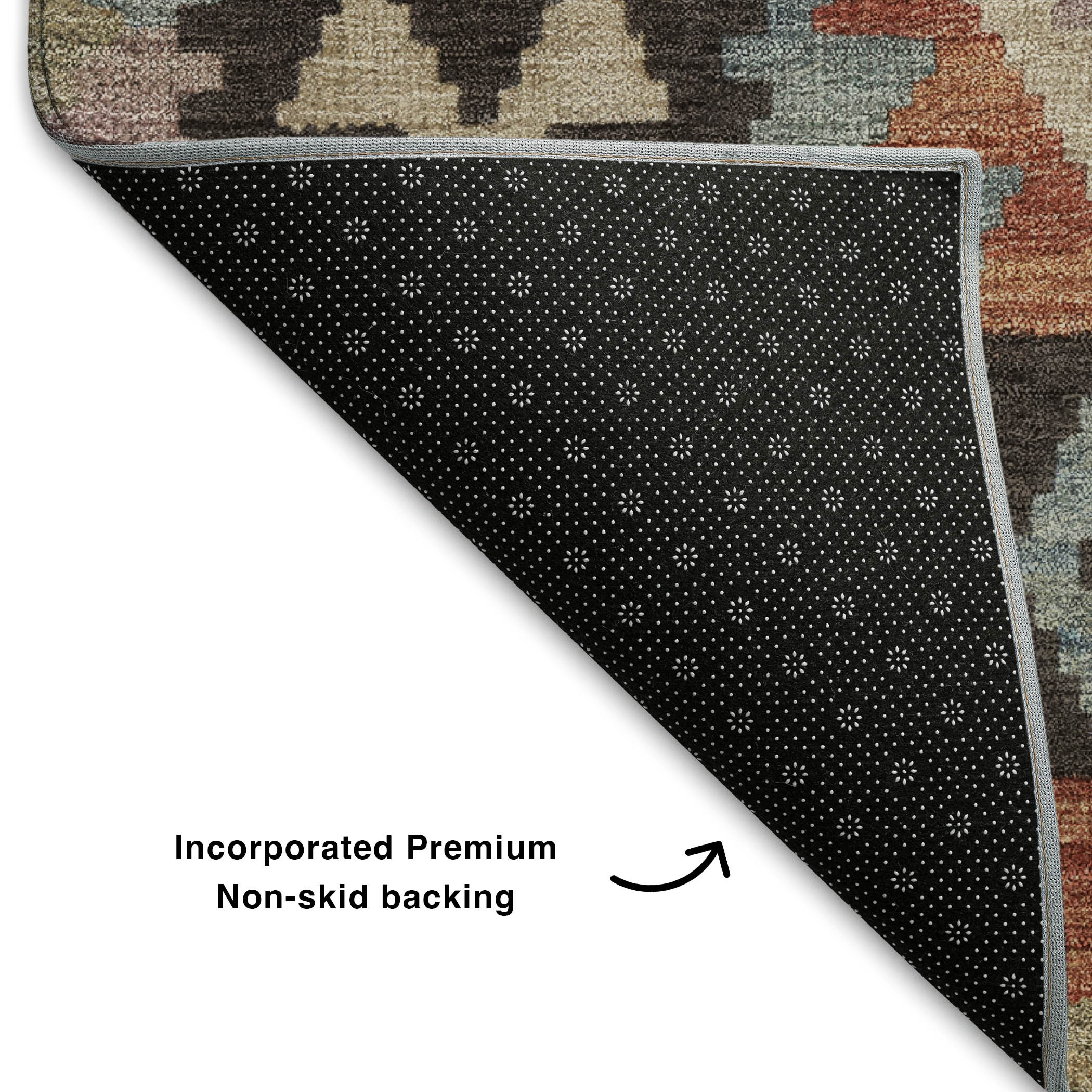 Add great coloration and comfortable texture to your space with this 8-foot x 10-foot rust blue and beige tribal washable area rug with uv protection. Ideal for spaces with kids and pets, this rug is stain resistant to help repel dirt and spilled liquids. Built to last, this rug crafted from polyester fibers is known for its durability and long lasting appeal. Rugs are a great way to showcase your style, hide imperfections, warm your home and reduce noise. This larger sized, transitional styled rug is ready to create a focal point or statement piece in your room. 96.00-inch h x 120.00-inch w x 0.39-inch d.