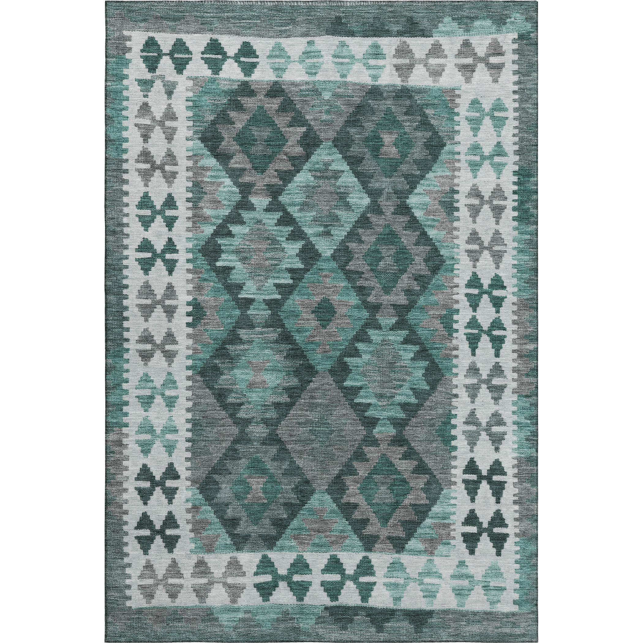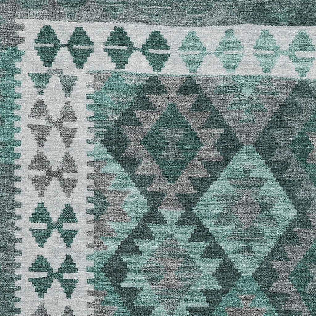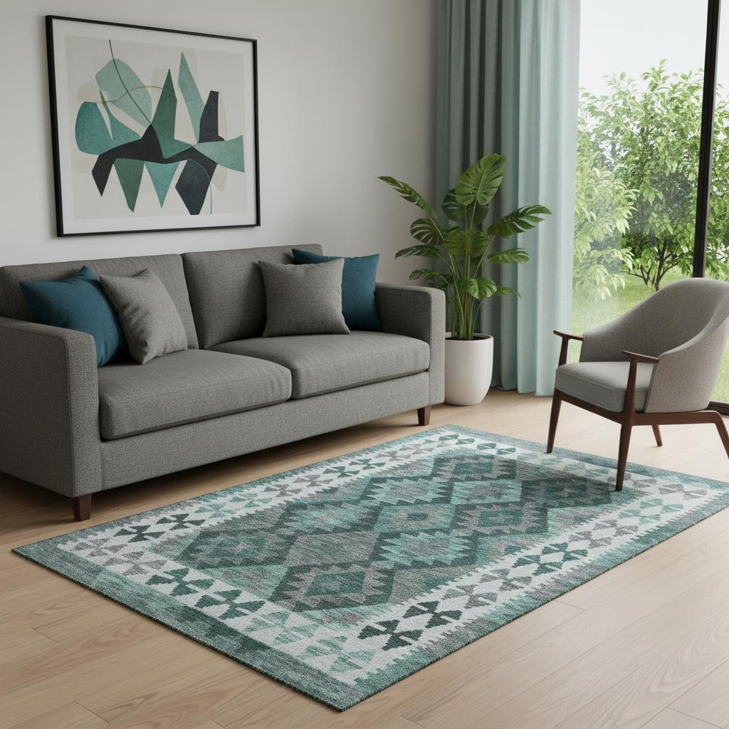 Add great coloration and comfortable texture to your space with this 5-foot x 8-foot pale aqua and ivory tribal washable area rug with uv protection. Ideal for spaces with kids and pets, this rug is stain resistant to help repel dirt and spilled liquids. Built to last, this rug crafted from polyester fibers is known for its durability and long lasting appeal. Rugs are a great way to showcase your style, hide imperfections, warm your home and reduce noise. This larger sized, transitional styled rug is ready to create a focal point or statement piece in your room. 60.00-inch h x 90.00-inch w x 0.39-inch d.