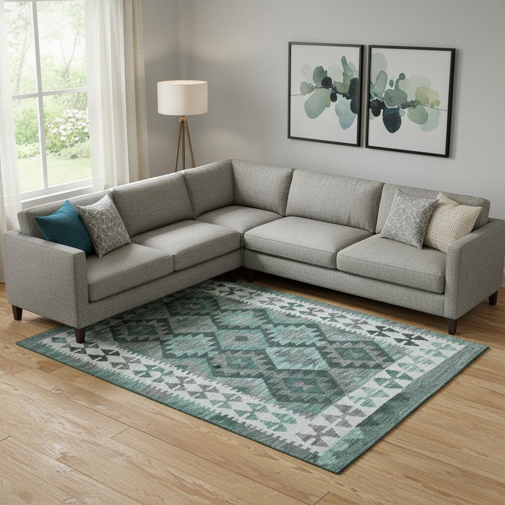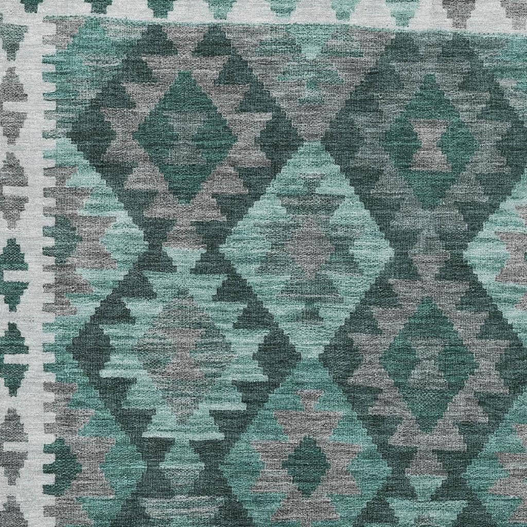Set an inviting tone in your space with this 9-foot x 12-foot pale aqua and ivory tribal washable area rug with uv protection. Ideal for spaces with kids and pets, this rug is stain resistant to help repel dirt and spilled liquids. Built to last, this rug crafted from polyester fibers is known for its durability and long lasting appeal. Rugs are a great way to showcase your style, hide imperfections, warm your home and reduce noise. This larger sized, transitional styled rug is ready to create a focal point or statement piece in your room. 108.00-inch h x 144.00-inch w x 0.39-inch d.