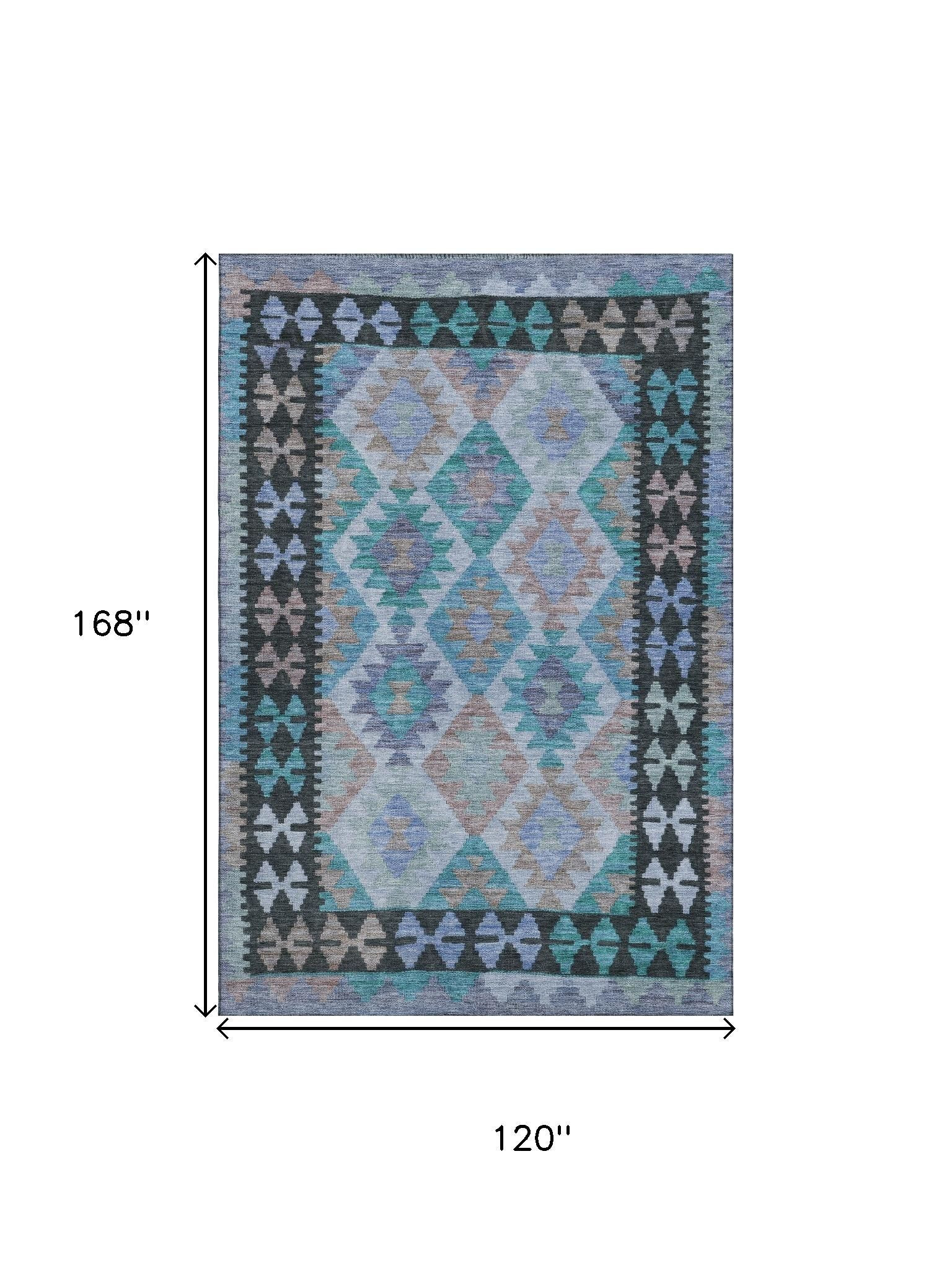 Add some artistry to your room with this 10-foot x 14-foot teal and charcoal tribal washable area rug with uv protection. Ideal for spaces with kids and pets, this rug is stain resistant to help repel dirt and spilled liquids. Built to last, this rug crafted from polyester fibers is known for its durability and long lasting appeal. Rugs are a great way to showcase your style, hide imperfections, warm your home and reduce noise. This larger sized, transitional styled rug is ready to create a focal point or statement piece in your room. 120.00-inch h x 168.00-inch w x 0.39-inch d.