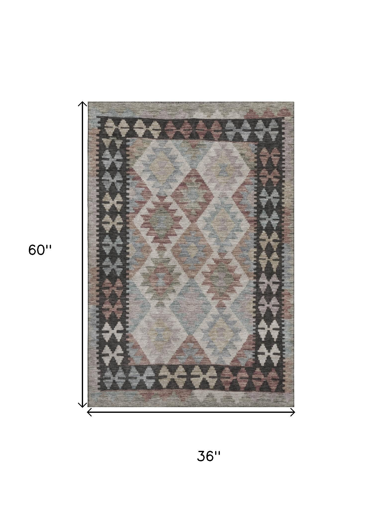 This 3-foot x 5-foot taupe and charcoal tribal washable area rug with uv protection, is a great way to add warmth to a room. Ideal for spaces with kids and pets, this rug is stain resistant to help repel dirt and spilled liquids. Built to last, this rug crafted from polyester fibers is known for its durability and long lasting appeal. Rugs are a great way to showcase your style, hide imperfections, warm your home and reduce noise. This smaller sized, transitional styled rug is just what you need for your walkway, bedside, in front of door, cabinet, refrigerator, or chair. 36.00-inch h x 60.00-inch w x 0.39-inch d.