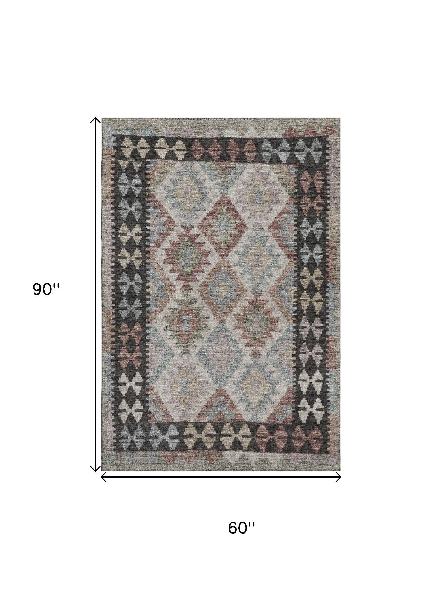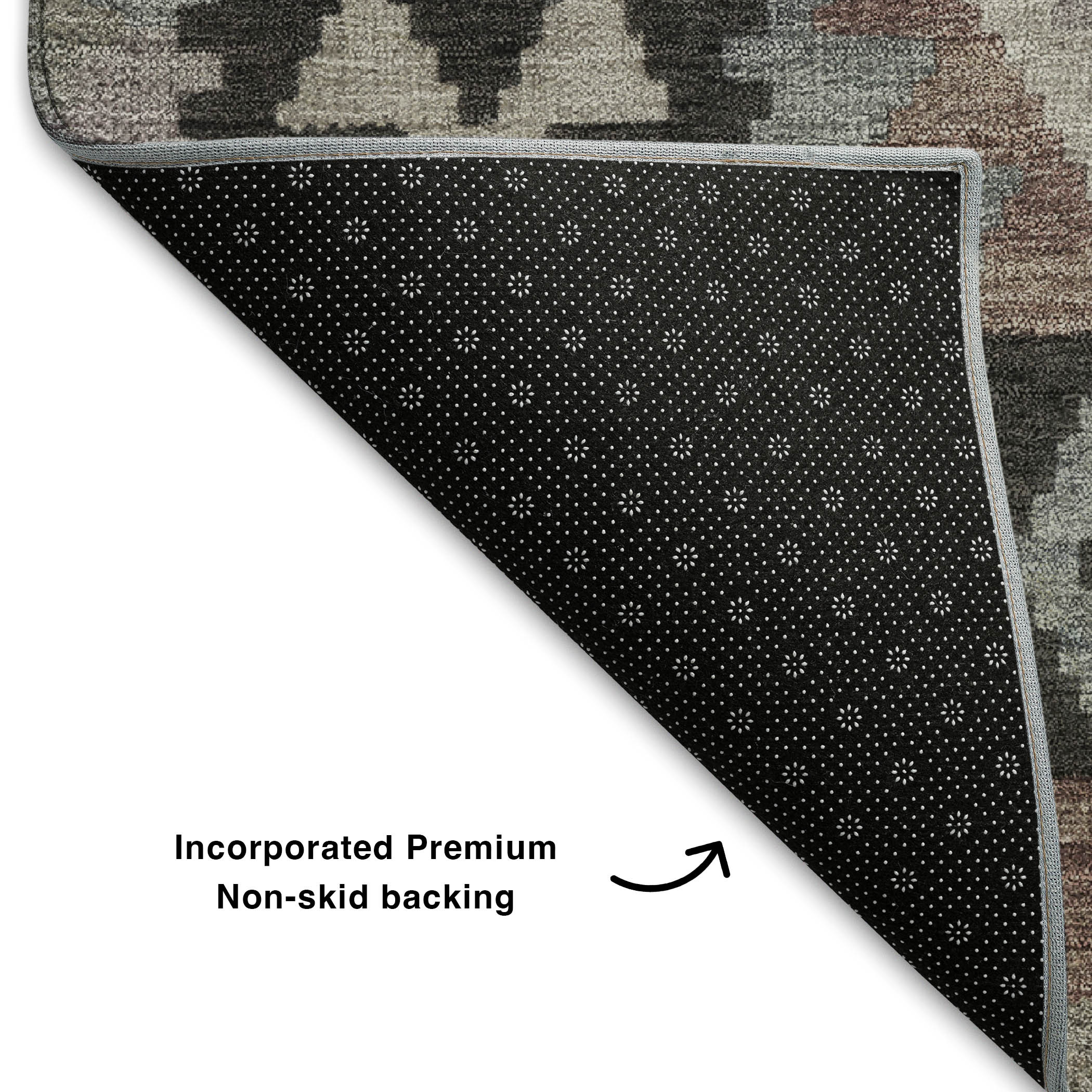 This 5-foot x 8-foot taupe and charcoal tribal washable area rug with uv protection, is a great way to add warmth to a room. Ideal for spaces with kids and pets, this rug is stain resistant to help repel dirt and spilled liquids. Built to last, this rug crafted from polyester fibers is known for its durability and long lasting appeal. Rugs are a great way to showcase your style, hide imperfections, warm your home and reduce noise. This larger sized, transitional styled rug is ready to create a focal point or statement piece in your room. 60.00-inch h x 90.00-inch w x 0.39-inch d.