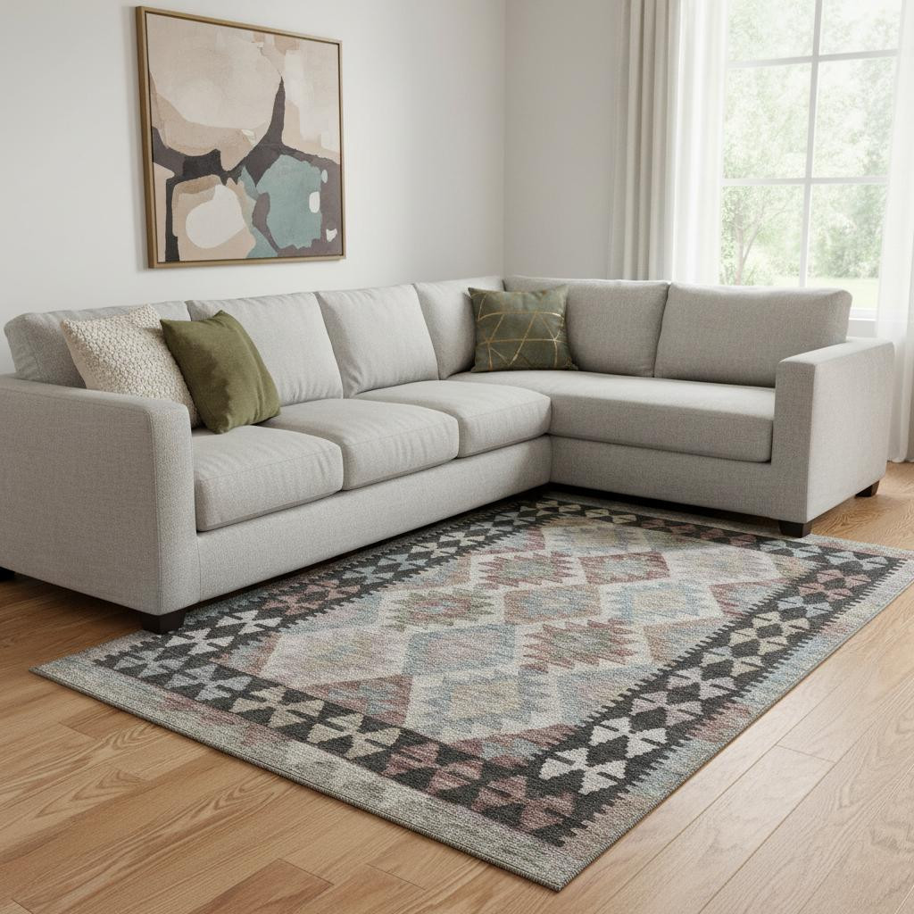 Set an inviting tone in your space with this 8-foot x 10-foot taupe and charcoal tribal washable area rug with uv protection. Ideal for spaces with kids and pets, this rug is stain resistant to help repel dirt and spilled liquids. Built to last, this rug crafted from polyester fibers is known for its durability and long lasting appeal. Rugs are a great way to showcase your style, hide imperfections, warm your home and reduce noise. This larger sized, transitional styled rug is ready to create a focal point or statement piece in your room. 96.00-inch h x 120.00-inch w x 0.39-inch d.