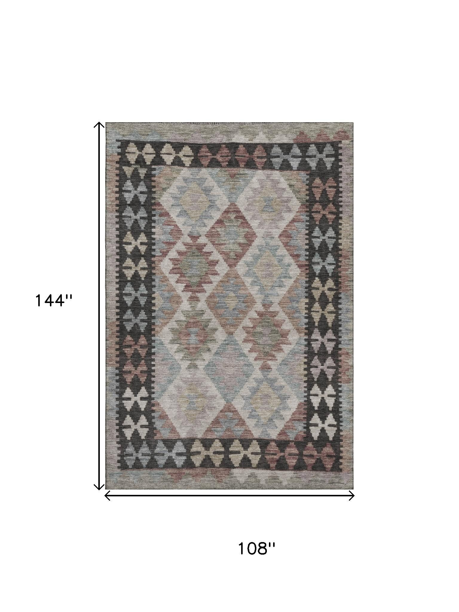 Add great coloration and comfortable texture to your space with this 9-foot x 12-foot taupe and charcoal tribal washable area rug with uv protection. Ideal for spaces with kids and pets, this rug is stain resistant to help repel dirt and spilled liquids. Built to last, this rug crafted from polyester fibers is known for its durability and long lasting appeal. Rugs are a great way to showcase your style, hide imperfections, warm your home and reduce noise. This larger sized, transitional styled rug is ready to create a focal point or statement piece in your room. 108.00-inch h x 144.00-inch w x 0.39-inch d.