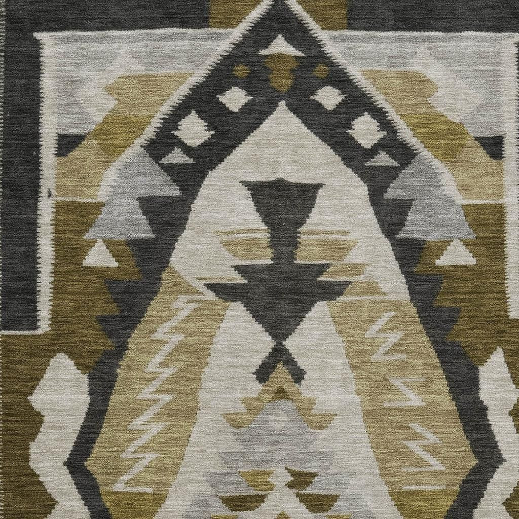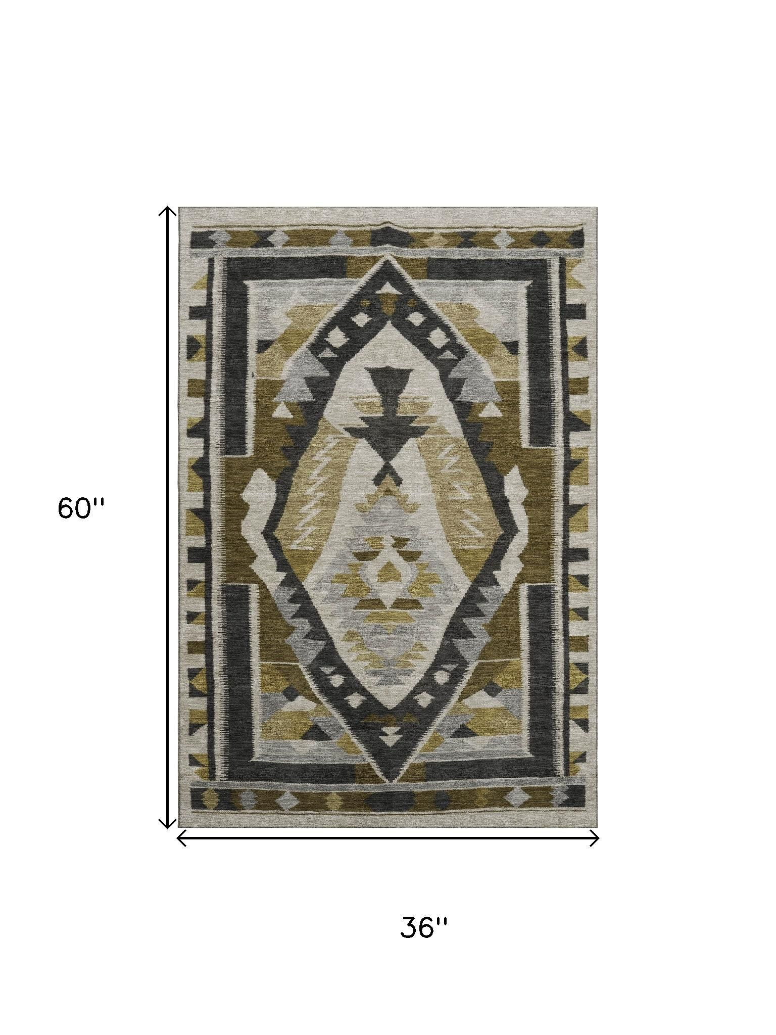 Set an inviting tone in your space with this 3-foot x 5-foot chocolate beige and charcoal tribal washable area rug with uv protection. Ideal for spaces with kids and pets, this rug is stain resistant to help repel dirt and spilled liquids. Built to last, this rug crafted from polyester fibers is known for its durability and long lasting appeal. Rugs are a great way to showcase your style, hide imperfections, warm your home and reduce noise. This smaller sized, transitional styled rug is just what you need for your walkway, bedside, in front of door, cabinet, refrigerator, or chair. 36.00-inch h x 60.00-inch w x 0.39-inch d.