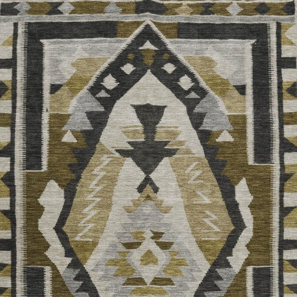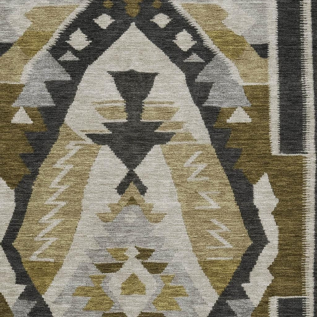 Add great coloration and comfortable texture to your space with this 8-foot x 10-foot chocolate beige and charcoal tribal washable area rug with uv protection. Ideal for spaces with kids and pets, this rug is stain resistant to help repel dirt and spilled liquids. Built to last, this rug crafted from polyester fibers is known for its durability and long lasting appeal. Rugs are a great way to showcase your style, hide imperfections, warm your home and reduce noise. This larger sized, transitional styled rug is ready to create a focal point or statement piece in your room. 96.00-inch h x 120.00-inch w x 0.39-inch d.
