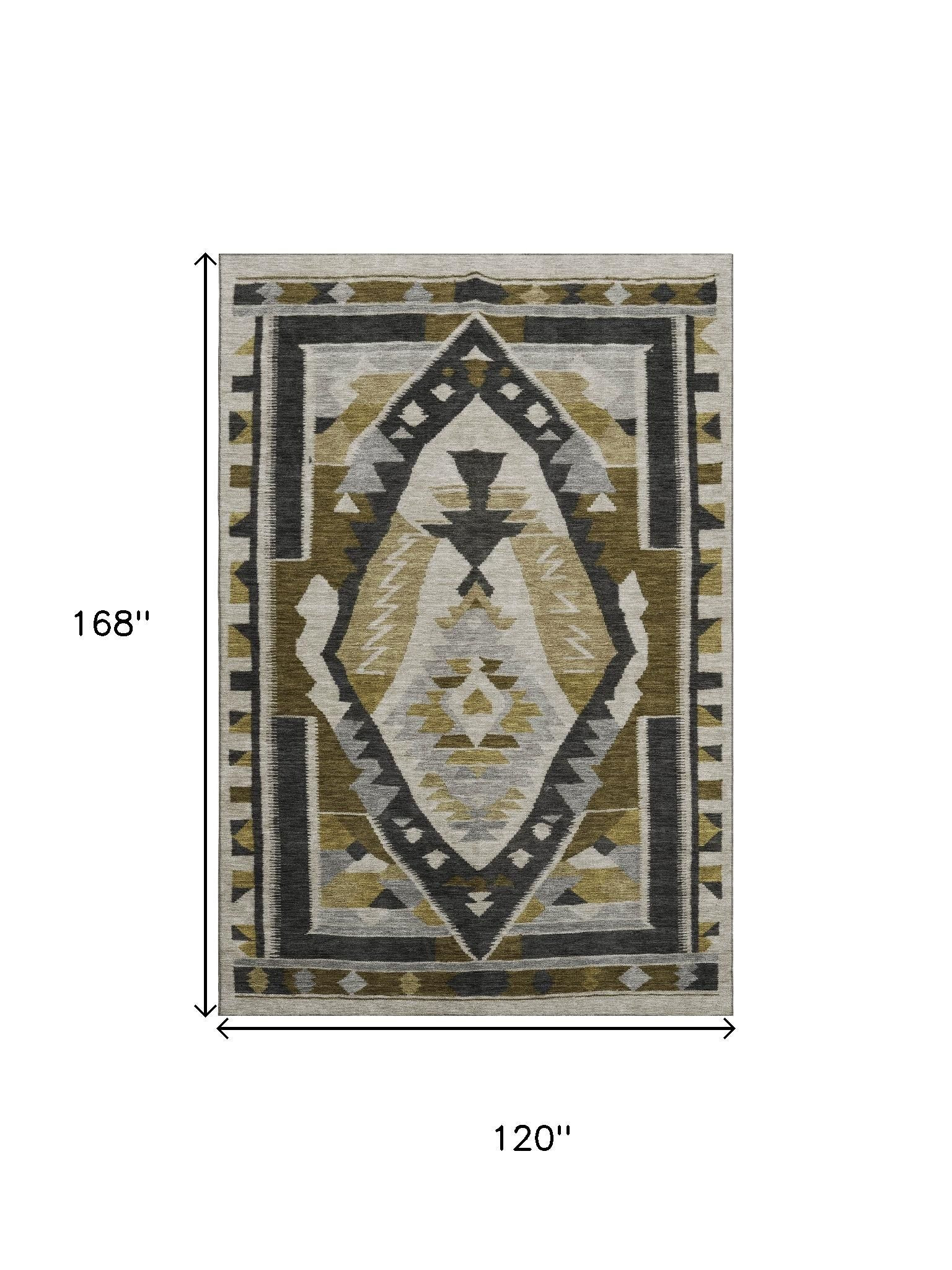 Set an inviting tone in your space with this 10-foot x 14-foot chocolate beige and charcoal tribal washable area rug with uv protection. Ideal for spaces with kids and pets, this rug is stain resistant to help repel dirt and spilled liquids. Built to last, this rug crafted from polyester fibers is known for its durability and long lasting appeal. Rugs are a great way to showcase your style, hide imperfections, warm your home and reduce noise. This larger sized, transitional styled rug is ready to create a focal point or statement piece in your room. 120.00-inch h x 168.00-inch w x 0.39-inch d.
