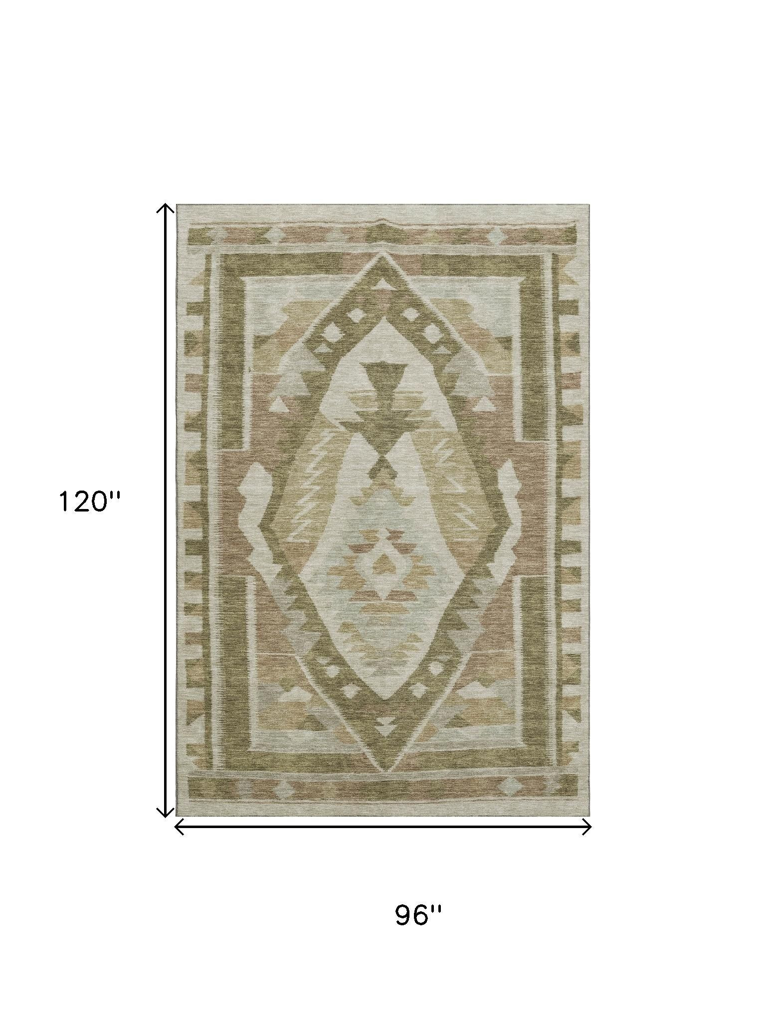 Set an inviting tone in your space with this 8-foot x 10-foot linen ivory and khaki tribal washable area rug with uv protection. Ideal for spaces with kids and pets, this rug is stain resistant to help repel dirt and spilled liquids. Built to last, this rug crafted from polyester fibers is known for its durability and long lasting appeal. Rugs are a great way to showcase your style, hide imperfections, warm your home and reduce noise. This larger sized, transitional styled rug is ready to create a focal point or statement piece in your room. 96.00-inch h x 120.00-inch w x 0.39-inch d.