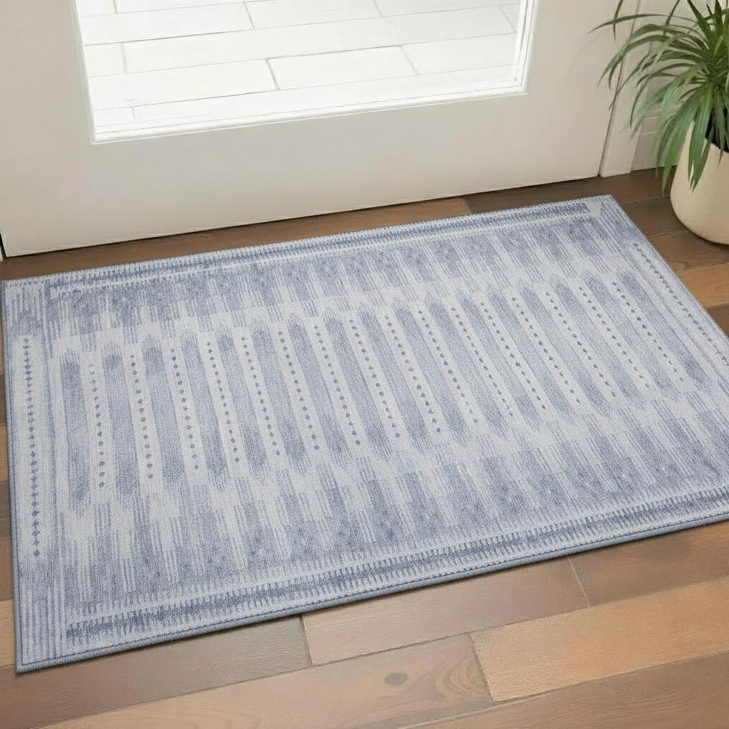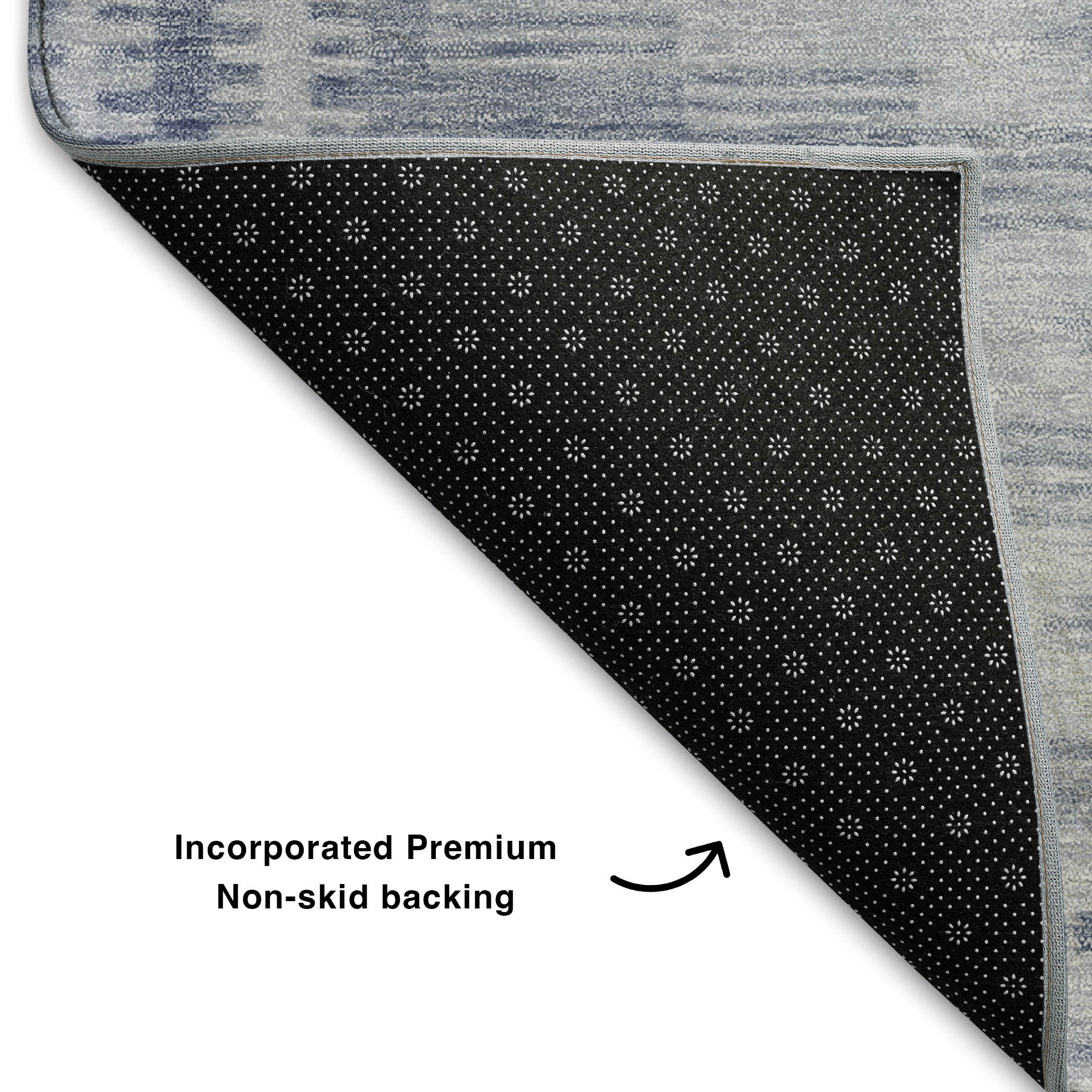 Set an inviting tone in your space with this 3-foot x 5-foot blue and denim blue geometric washable area rug with uv protection. Ideal for spaces with kids and pets, this rug is stain resistant to help repel dirt and spilled liquids. Built to last, this rug crafted from polyester fibers is known for its durability and long lasting appeal. Rugs are a great way to showcase your style, hide imperfections, warm your home and reduce noise. This smaller sized, transitional styled rug is just what you need for your walkway, bedside, in front of door, cabinet, refrigerator, or chair. 36.00-inch h x 60.00-inch w x 0.39-inch d.