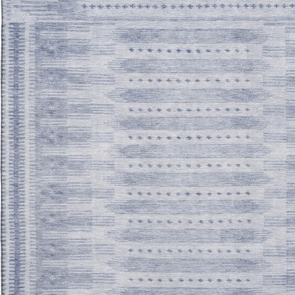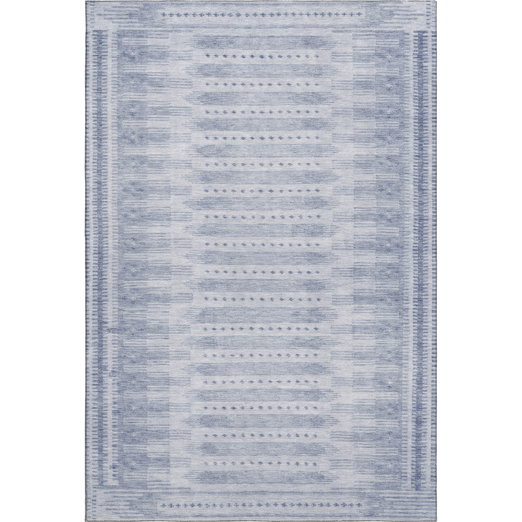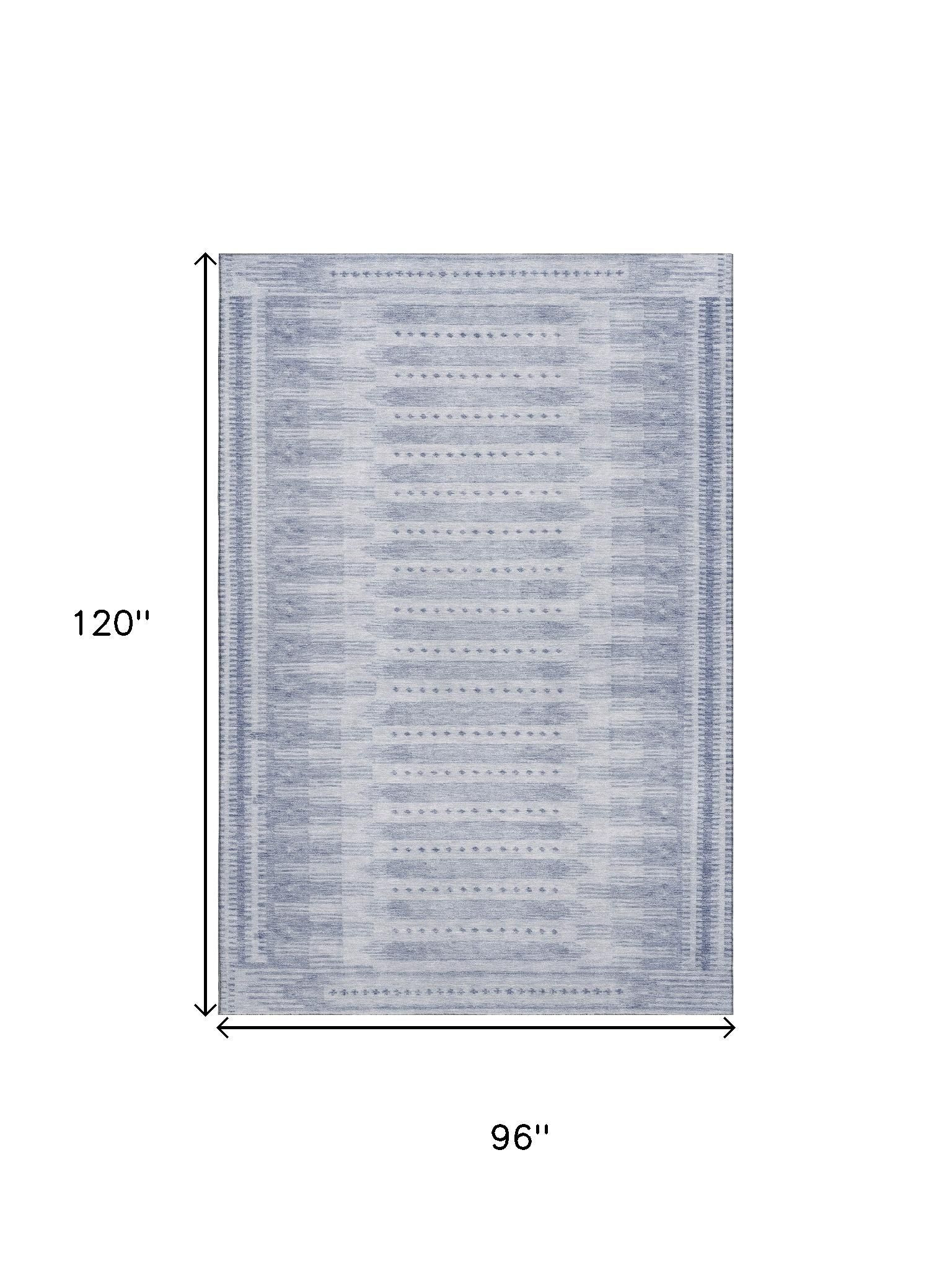Set an inviting tone in your space with this 8-foot x 10-foot blue and denim blue geometric washable area rug with uv protection. Ideal for spaces with kids and pets, this rug is stain resistant to help repel dirt and spilled liquids. Built to last, this rug crafted from polyester fibers is known for its durability and long lasting appeal. Rugs are a great way to showcase your style, hide imperfections, warm your home and reduce noise. This larger sized, transitional styled rug is ready to create a focal point or statement piece in your room. 96.00-inch h x 120.00-inch w x 0.39-inch d.
