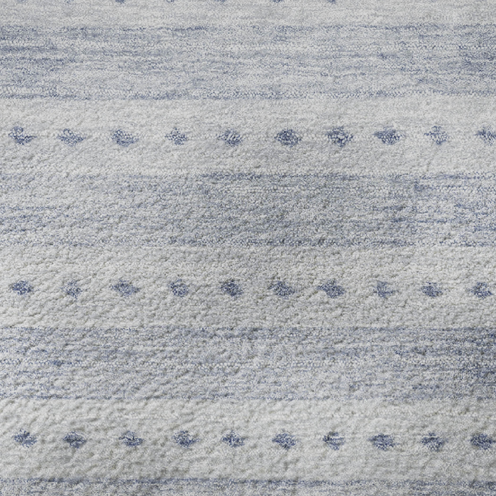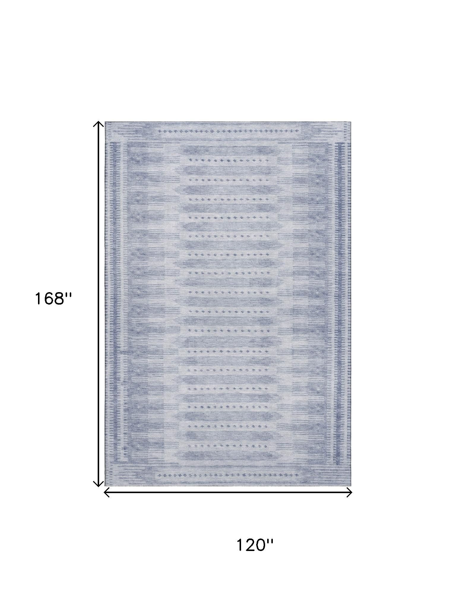 This 10-foot x 14-foot blue and denim blue geometric washable area rug with uv protection, is a great way to add warmth to a room. Ideal for spaces with kids and pets, this rug is stain resistant to help repel dirt and spilled liquids. Built to last, this rug crafted from polyester fibers is known for its durability and long lasting appeal. Rugs are a great way to showcase your style, hide imperfections, warm your home and reduce noise. This larger sized, transitional styled rug is ready to create a focal point or statement piece in your room. 120.00-inch h x 168.00-inch w x 0.39-inch d.