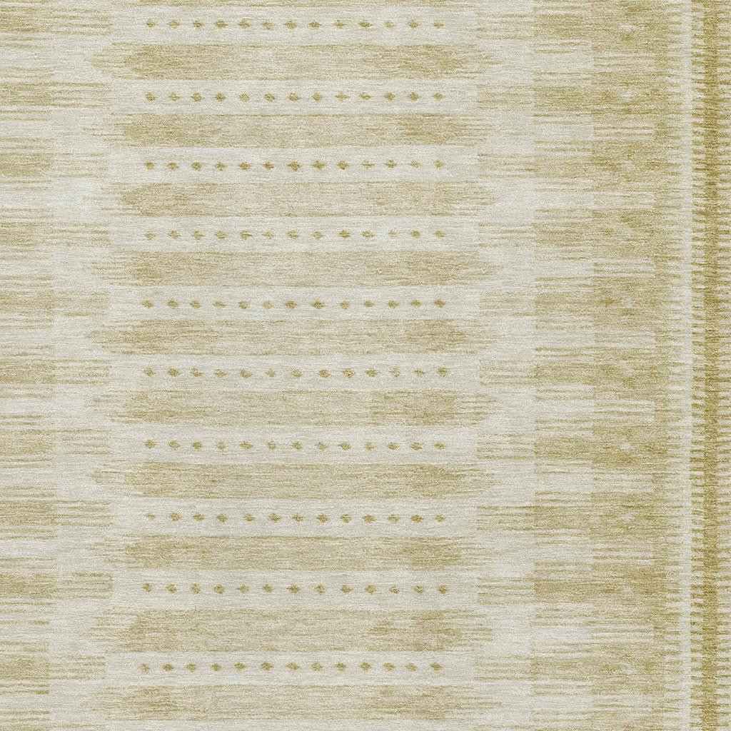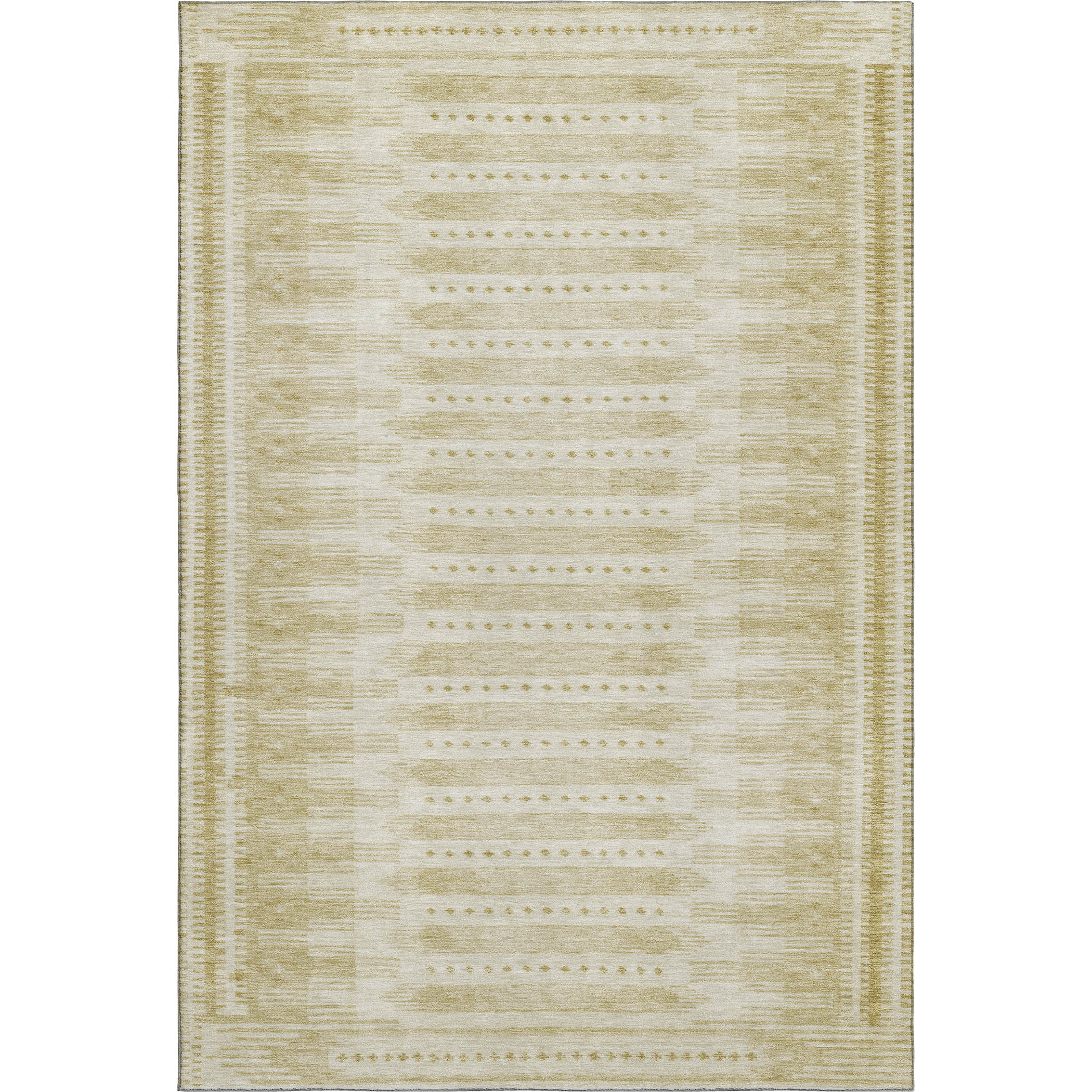 This 5-foot x 8-foot gold and beige geometric washable area rug with uv protection, is a great way to add warmth to a room. Ideal for spaces with kids and pets, this rug is stain resistant to help repel dirt and spilled liquids. Built to last, this rug crafted from polyester fibers is known for its durability and long lasting appeal. Rugs are a great way to showcase your style, hide imperfections, warm your home and reduce noise. This larger sized, transitional styled rug is ready to create a focal point or statement piece in your room. 60.00-inch h x 90.00-inch w x 0.39-inch d.