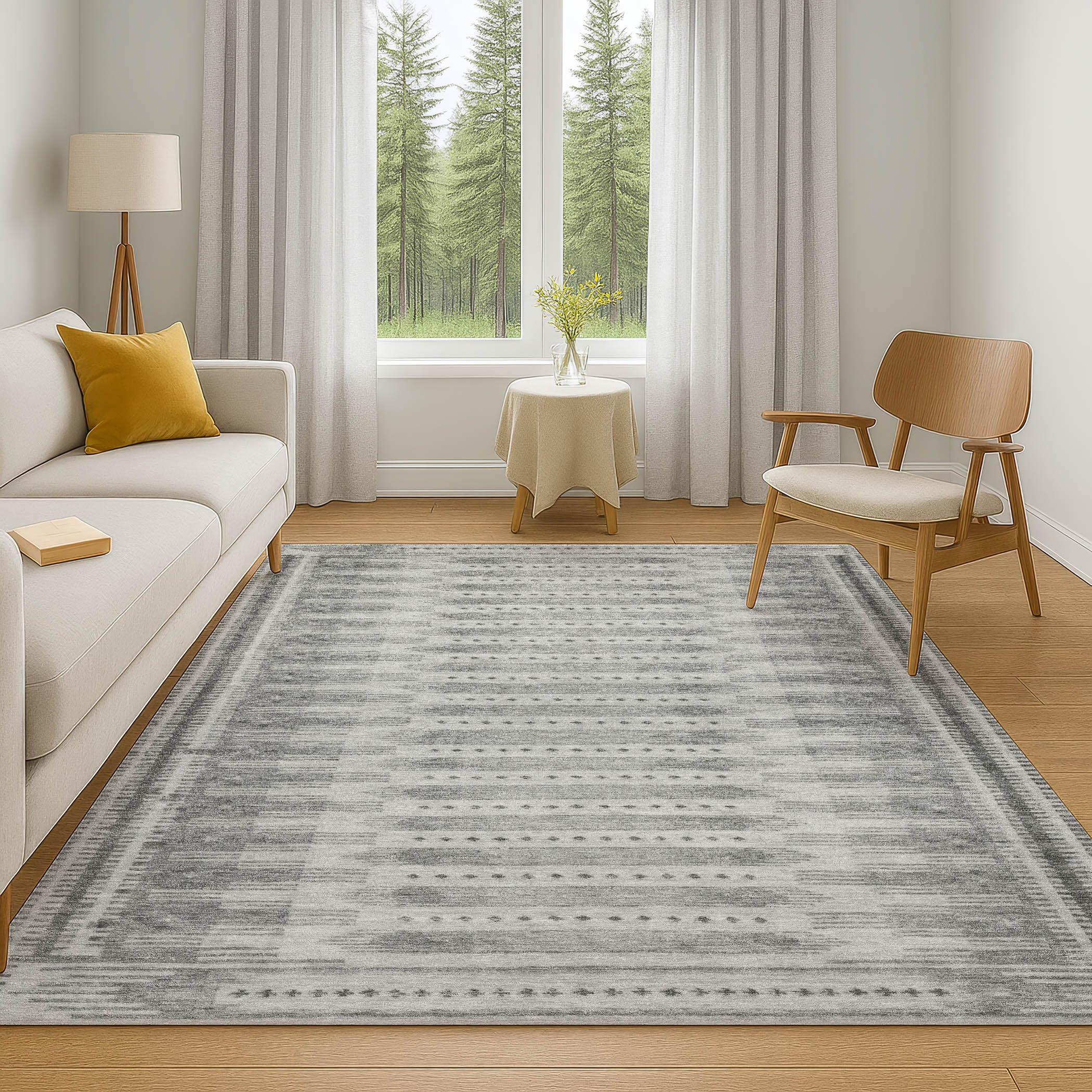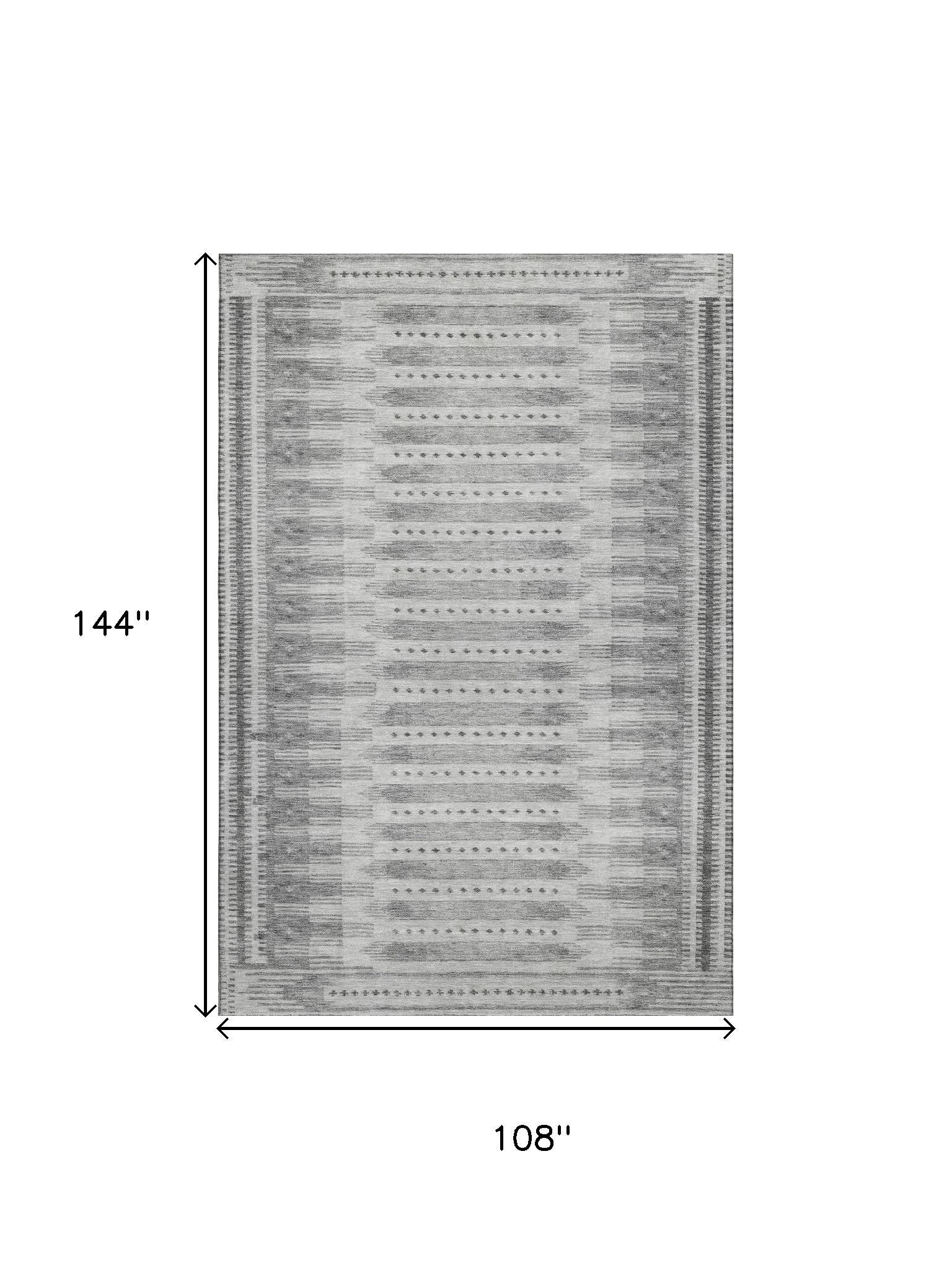 Add great coloration and comfortable texture to your space with this 9-foot x 12-foot gray and silver geometric washable area rug with uv protection. Ideal for spaces with kids and pets, this rug is stain resistant to help repel dirt and spilled liquids. Built to last, this rug crafted from polyester fibers is known for its durability and long lasting appeal. Rugs are a great way to showcase your style, hide imperfections, warm your home and reduce noise. This larger sized, transitional styled rug is ready to create a focal point or statement piece in your room. 108.00-inch h x 144.00-inch w x 0.39-inch d.