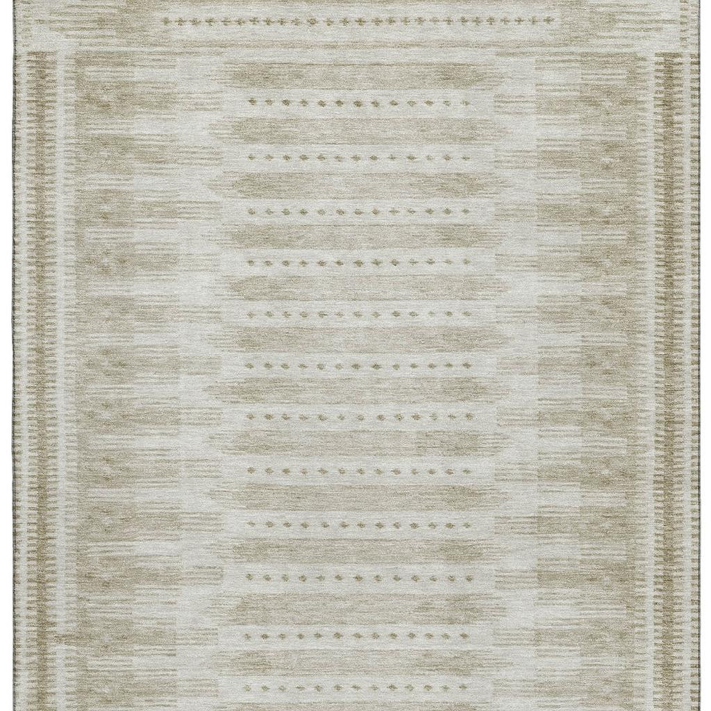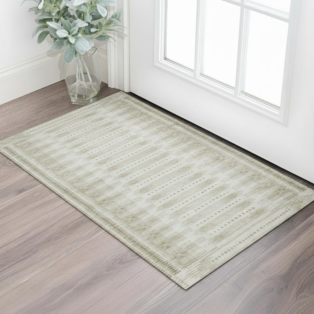 Add great coloration and comfortable texture to your space with this 3-foot x 5-foot khaki and beige geometric washable area rug with uv protection. Ideal for spaces with kids and pets, this rug is stain resistant to help repel dirt and spilled liquids. Built to last, this rug crafted from polyester fibers is known for its durability and long lasting appeal. Rugs are a great way to showcase your style, hide imperfections, warm your home and reduce noise. This smaller sized, transitional styled rug is just what you need for your walkway, bedside, in front of door, cabinet, refrigerator, or chair. 36.00-inch h x 60.00-inch w x 0.39-inch d.